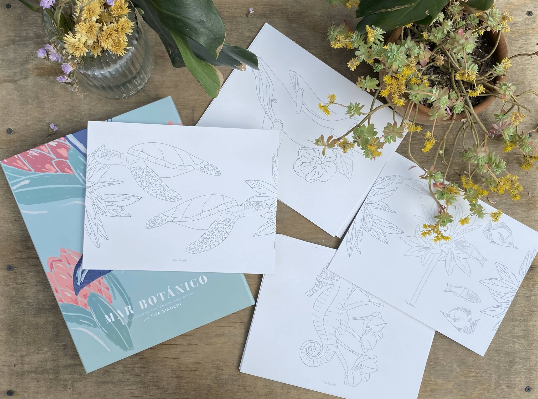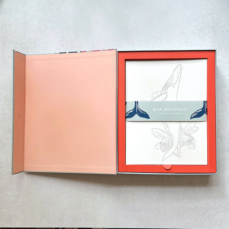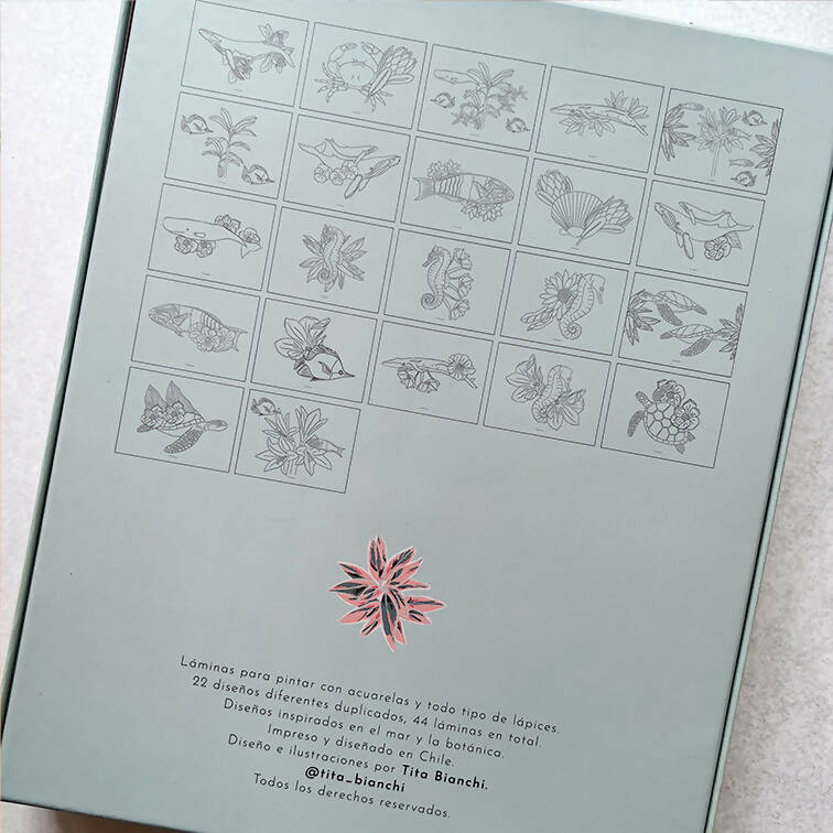 Esta Caja es un especial producto que incluye láminas para colorear, el modelo MAR BOTÁNICO inspirado en el mundo marino mezclado con la flora. Ideal para llevar contigo a tus actividades al aire libre, paseos y viajes. Comienza en este mundo de colorear usando la técnica que más te guste. Combina esta caja con el modelo PRIMAVERA y completa tu colección de libros para colorear.