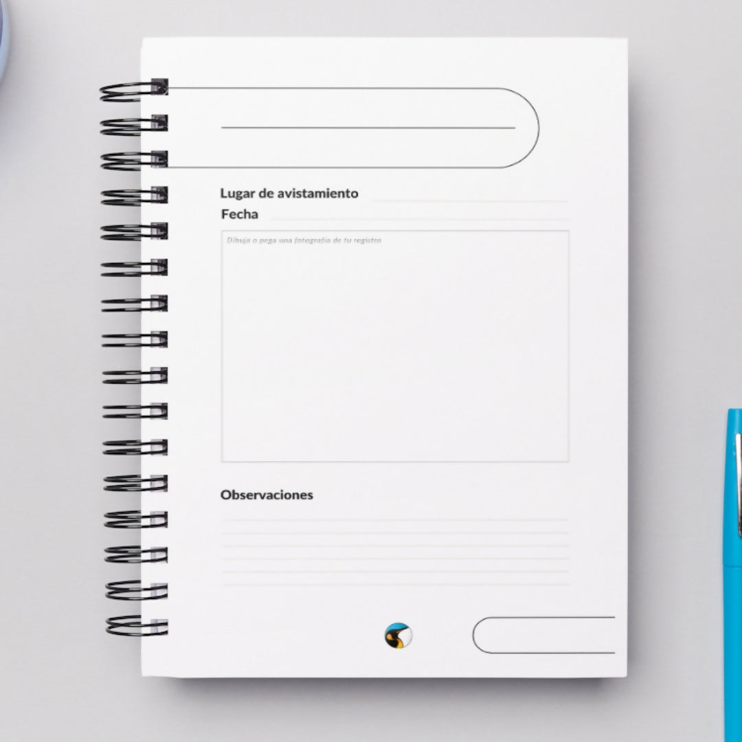 Espacio para que registres la especie según el lugar de avistamiento, fecha, observaciones y registro visual.