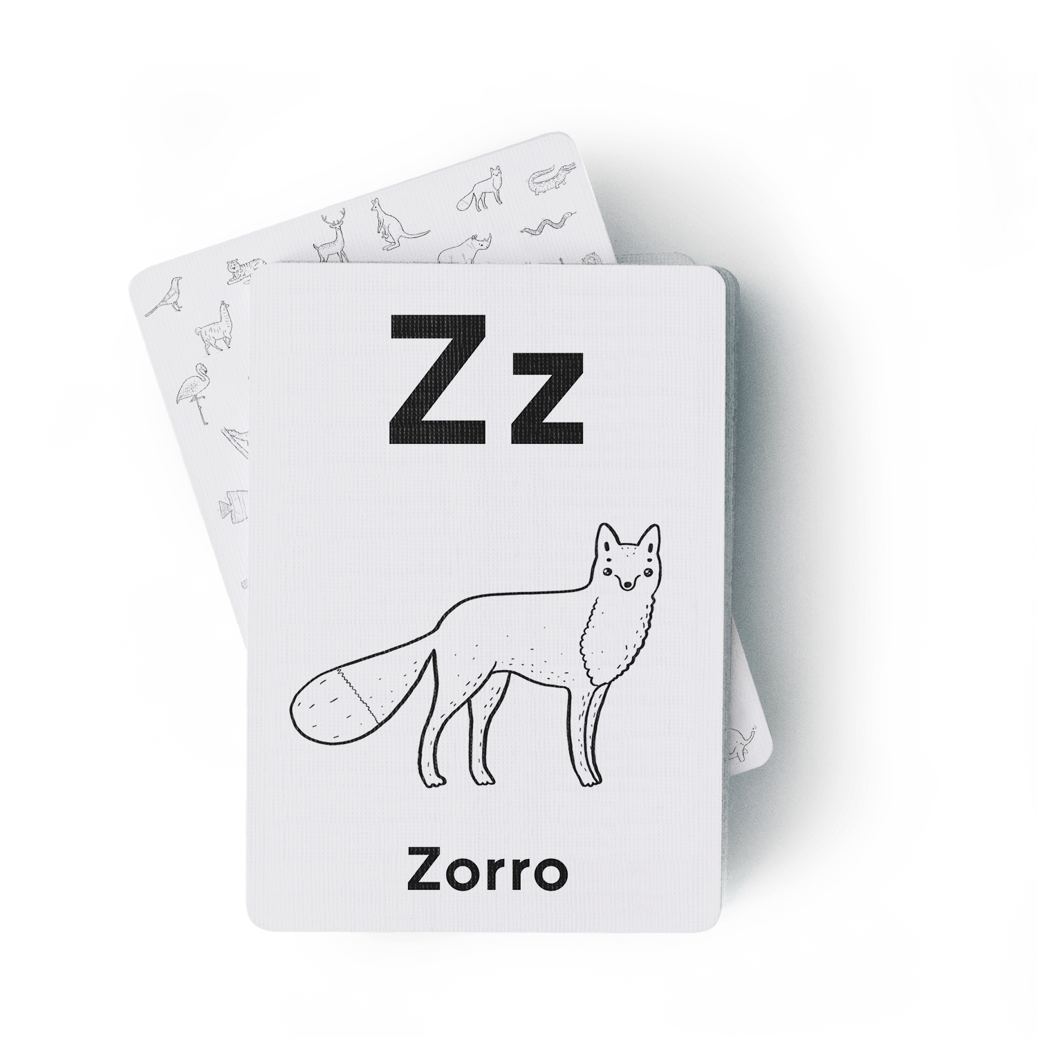 Alfabeto animal es un set de cartas de la A a la Z con ilustraciones de animales. Una entretenida forma para aprender el abecedario, introducirse al mundo de la lectoescritura de una manera lúdica, estimulando el desarrollo cognitivo y la imaginación. Están diseñadas para que niños y niñas las pinten y jueguen a contar historias y a memorizar animales. Este set incluye 30 cartas, cada una con un animal del abecedario.