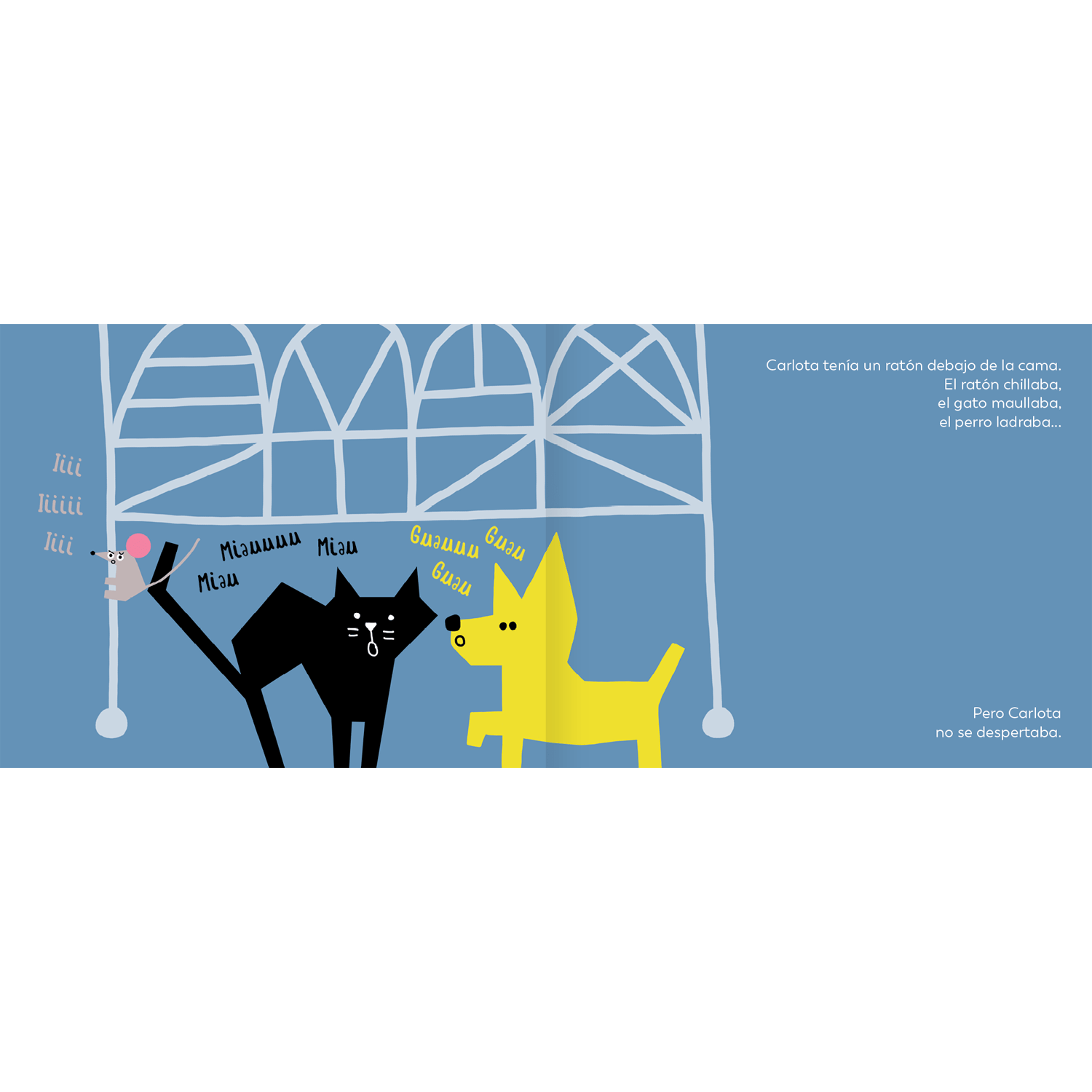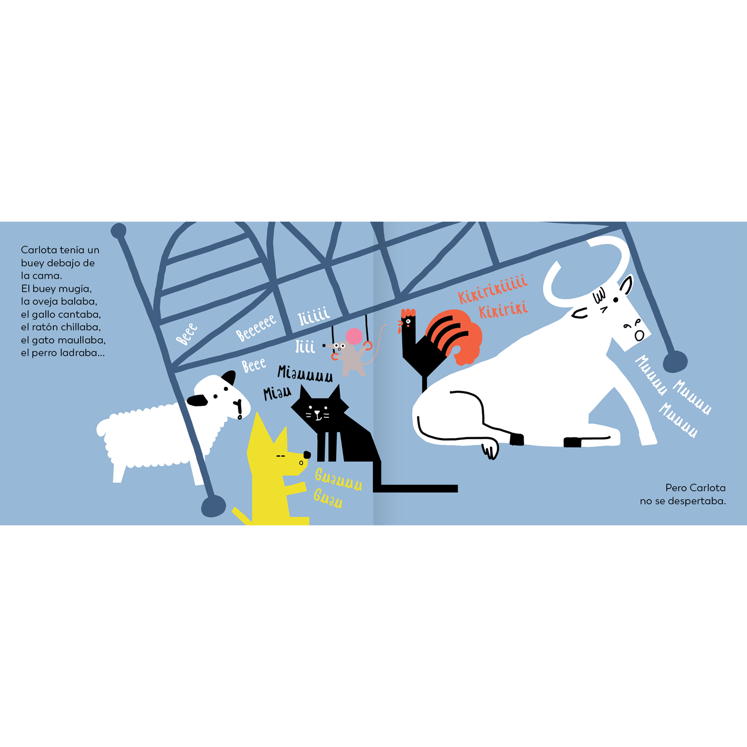Esta historia cobra vida a través de las onomatopeyas de animales, que se suman y repiten constantemente hasta lograr despertar a Carlota. La repetición de palabras y la inclusión de estas onomatopeyas crean un ritmo especial en el texto, añadiendo musicalidad y fluidez a la lectura. Es ideal para enriquecer el vocabulario, además de contar con ilustraciones llamativas y sencillas. Duerme, duerme, Carlota hará reír y despertará hasta a los más dormilones.