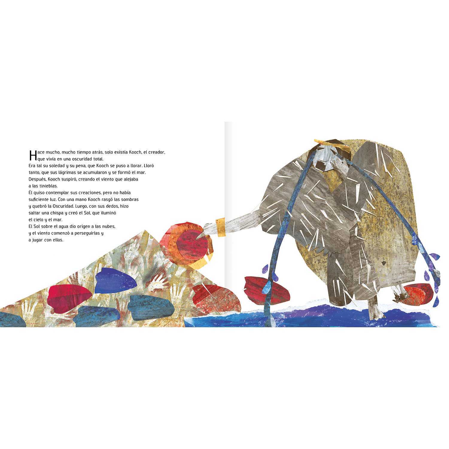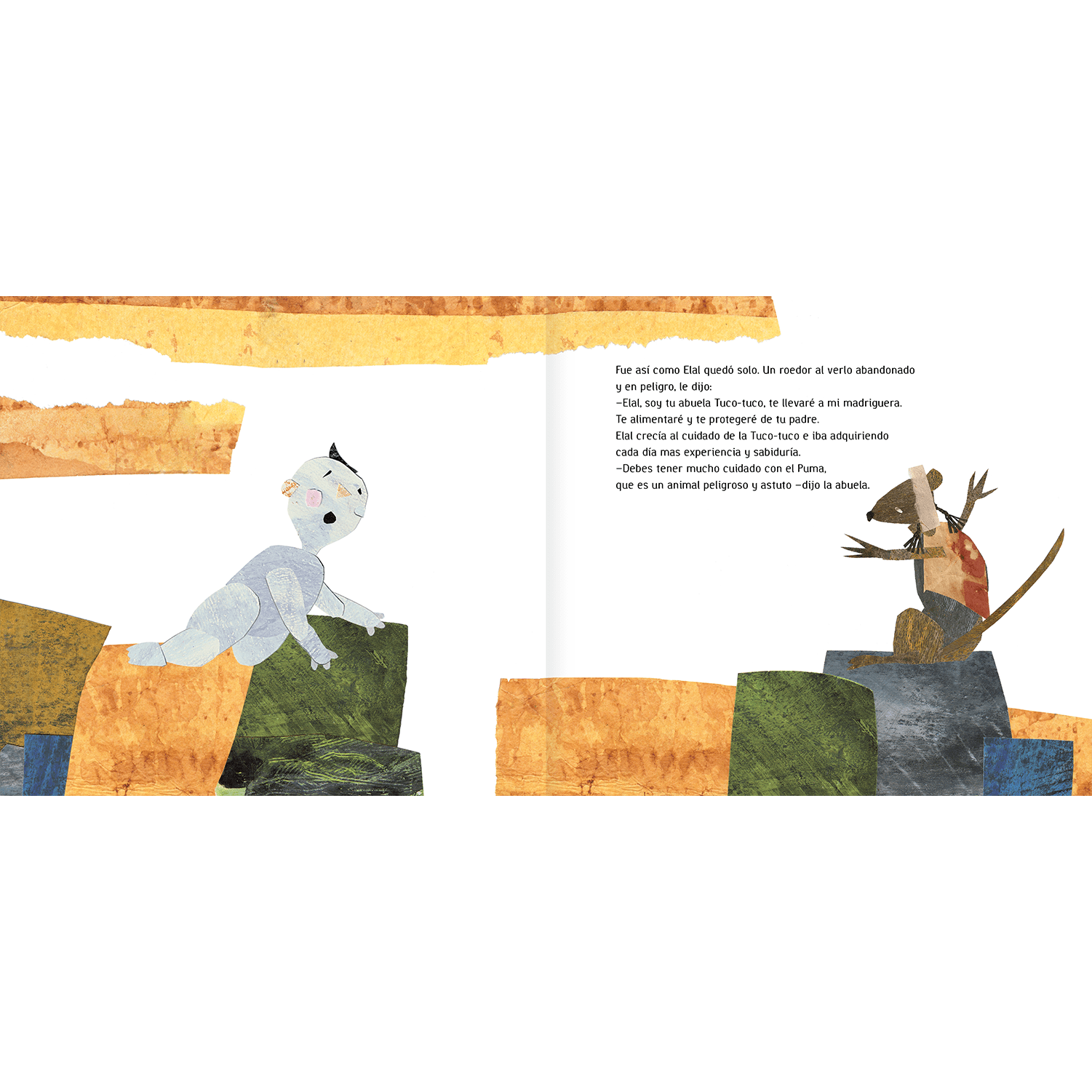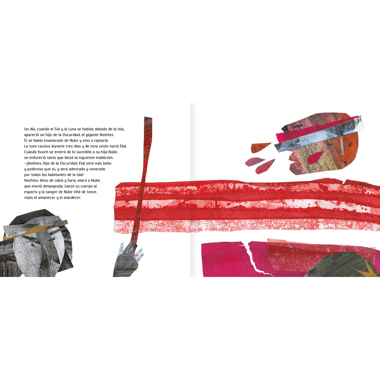 Este libro narra el mito de creación aonikenk (tehuelche). Relata el origen de la tierra y la historia de Elal, hijo del gigante Noshtex. Noshtex está envidioso de Elal y lo persigue para matarlo. Los animales elaboran un plan para salvar a Elal, que consiste en llevarlo a la Patagonia.