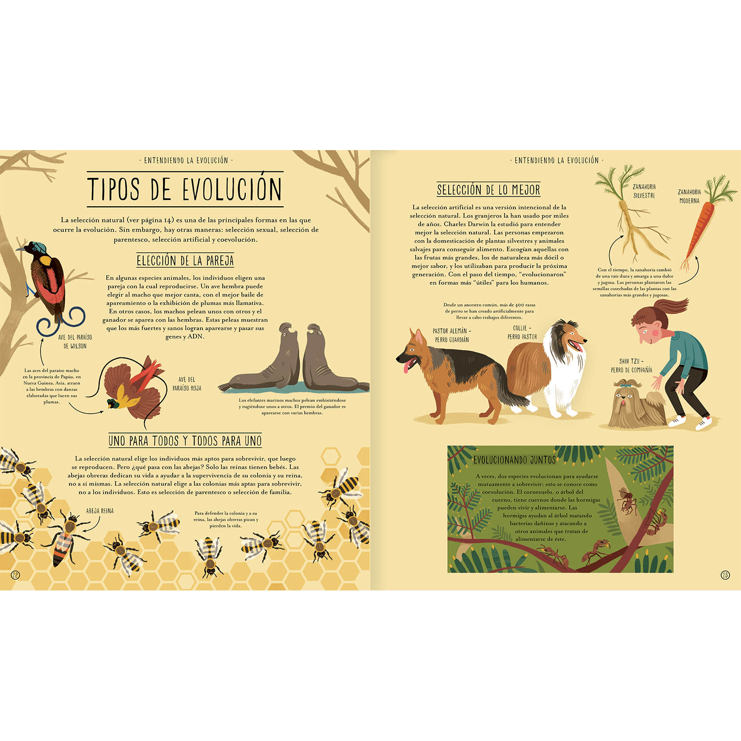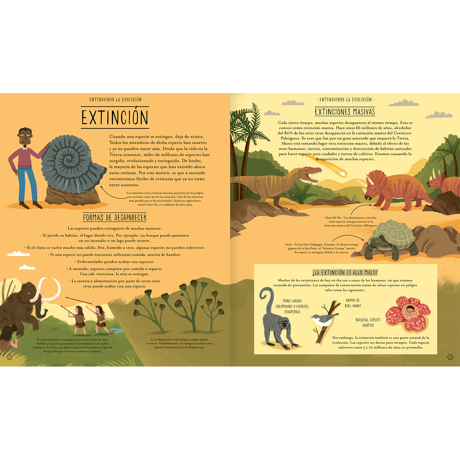 "Increíble Evolución" arroja luz sobre este increíble proceso, desde el comienzo de la vida hace unos 3.800 millones de años, hasta las millones de especies diferentes que viven hoy en día. Repleto de explicaciones claras, hermosas ilustraciones y datos fascinantes sobre las criaturas más extrañas y espectaculares del planeta, Increíble Evolución mantendrá a los niños (¡y también a los adultos!) entretenidos durante horas. Descubre qué hace que un pez sea un pez, por qué las jirafas tienen cuellos tan largos y cómo están relacionados todos los seres vivos, desde los repollos hasta los tigres. Aprendí algo nuevo en cada página. Con ilustraciones detalladas y con colores brillantes, texto claro y conciso y ayudas visuales inteligentes, este libro toma un tema complejo y lo presenta en un formato fácil de entender, accesible y agradable para sus lectores (jóvenes y mayores).