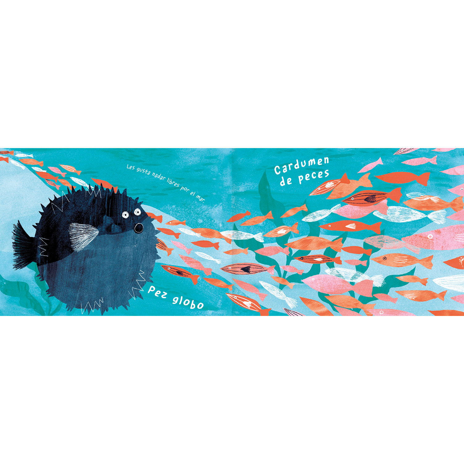 Libro en cartoné para introducir a los mas pequeños al mundo de los animales marinos. Cada animal está bellamente ilustrado y viene con una característica que los identifica. Es una mirada para despertar el amor y la curiosidad por la naturaleza, para disfrutar, valorar y aprender desde los primeros años.