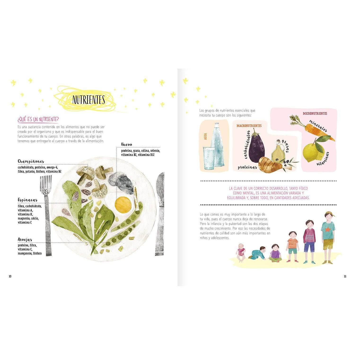 Comer es una necesidad básica sin la cual los seres humanos no podríamos pensar, movernos o estudiar. Comemos todos los días, varias veces al día y muchas veces comemos sin pensarlo, por costumbre, sin darnos cuenta de lo importante que son estas pequeñas decisiones. Se nos olvida que lo que ingerimos le permite a nuestras células funcionar, y que cada bocado tiene un papel fundamental en nuestra salud. Este libro contiene información y consejos que ayudan a ingerir los alimentos que el cuerpo y mente necesitan. En este libro se explican conceptos básicos de la alimentación sana, desde el proceso digestivo, las bacterias, las vitaminas, los minerales hasta la importancia de la actividad física y consejos que permiten organizar desayunos, almuerzos y cenas en forma sana, entretenida y equilibrada.