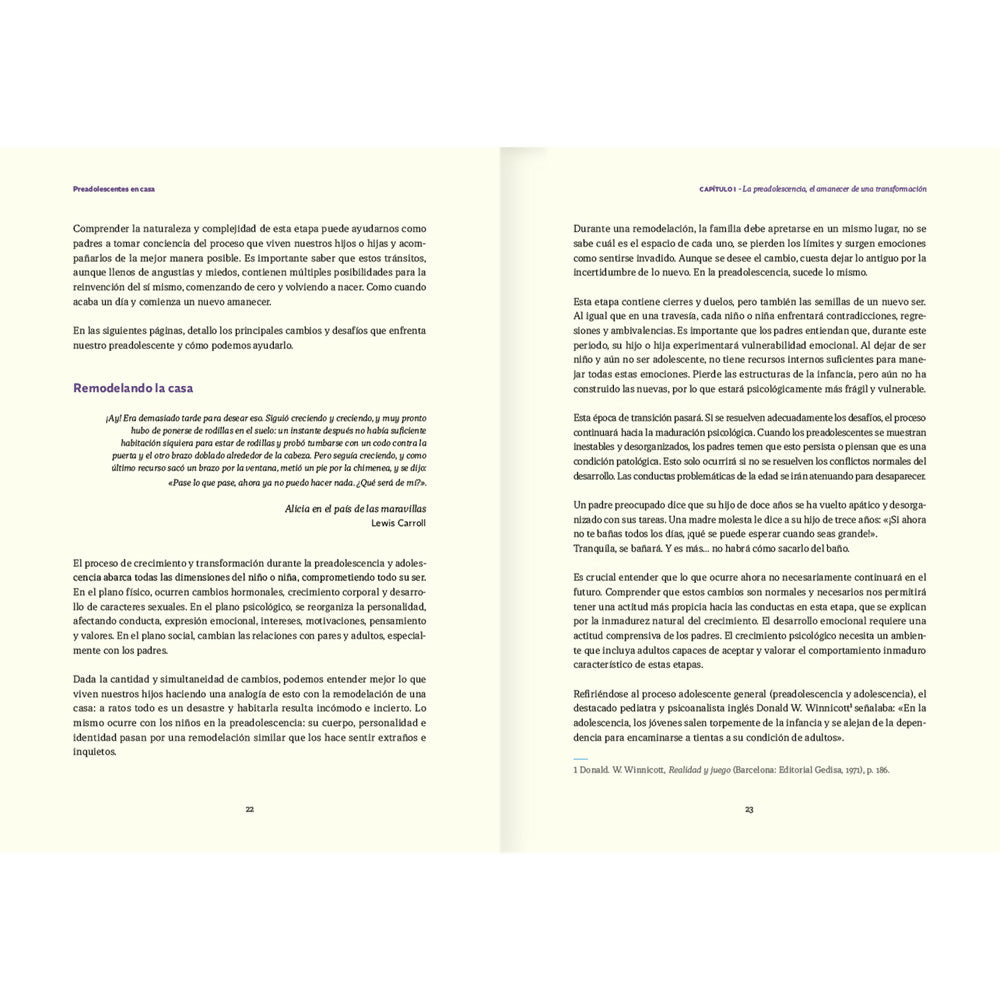 ¿Qué pasa cuando los niños y niñas crecen, dejan la infancia pero aún no son adolescentes? Preadolescentes en casa es una guía cercana, clara y empática para acompañar este momento de transición, desafiante y valioso. La psicóloga Paulina Peluchonneau, con más de 35 años de experiencia clínica y de divulgación, escribe este libro con un enfoque positivo y comprensivo compartiendo herramientas para madres, padres y adultos significativos que quieren entender mejor los cambios físicos, emocionales y sociales que viven los preadolescentes. A través de ejemplos cotidianos, consejos prácticos y un lenguaje sencillo, este libro ayuda a fortalecer los vínculos familiares, fomentar la comunicación y ofrecer contención sin perder el respeto por la autonomía en desarrollo. Una lectura que orienta e inspira a criar desde la confianza y el respeto mutuo. Una brújula para quienes quieren acompañar con amor y claridad los años de cambio que anuncian la adolescencia.