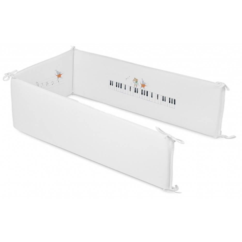 Protector para cuna de 70×140 cm. Dos laterales acolchados y una cabecera con amarras.