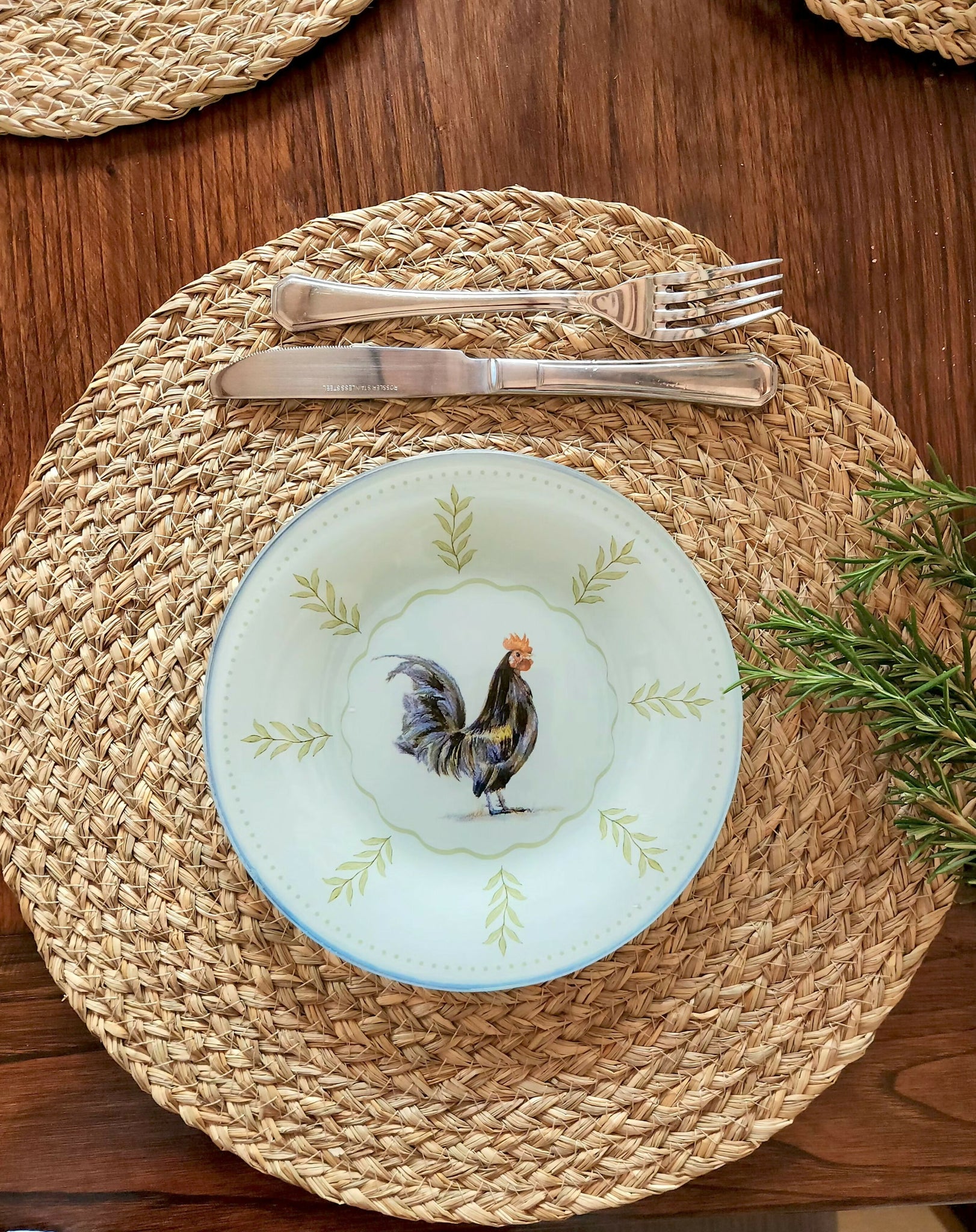 Plato de postre de 19 cm con un elegante diseño de gallo negro que añade carácter a tu mesa. Fabricado con materiales resistentes y duraderos, es completamente apto para lavavajilla, facilitando su limpieza y mantenimiento. Ideal para servir postres, frutas o aperitivos con estilo. Su tamaño versátil lo convierte en una pieza funcional que combina practicidad con diseño decorativo, perfecta para el uso diario o para ocasiones especiales.