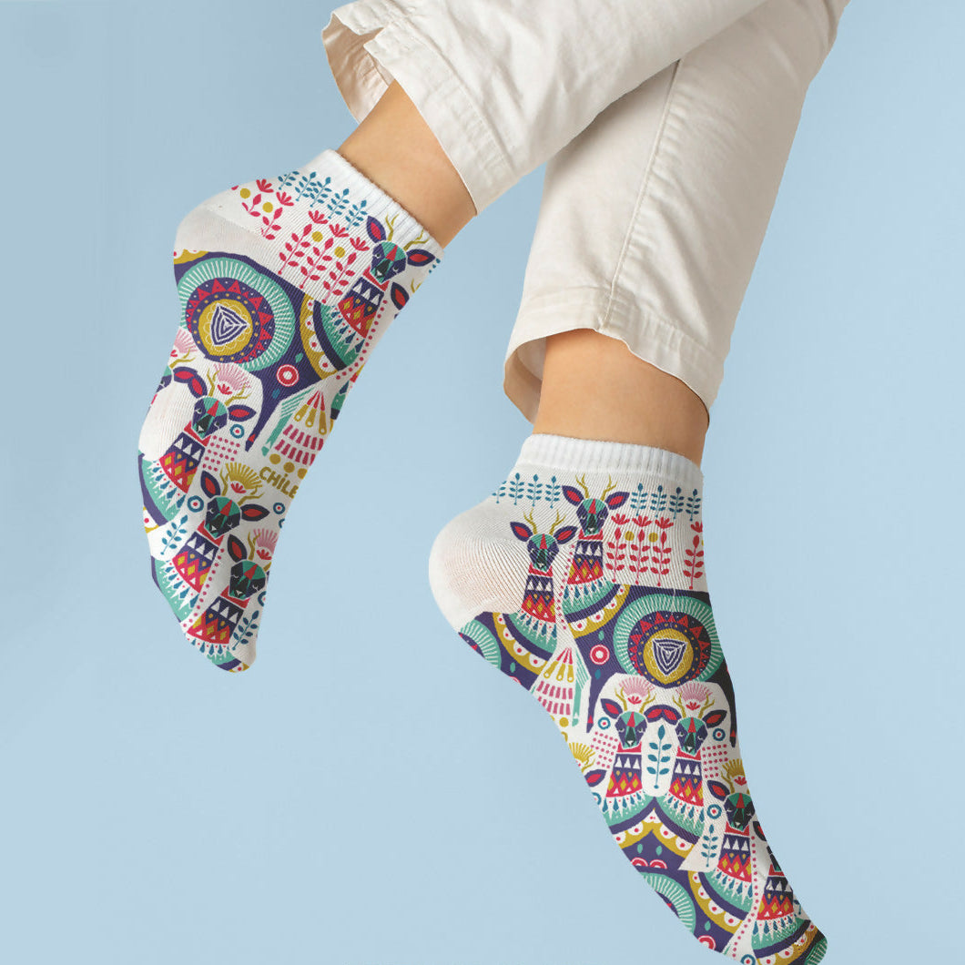 Nuestros Calcetines Cortos Print inspirados en el Huemul, un toque de color para tus pies. ¡Suaves, diferentes y muy cómodos!