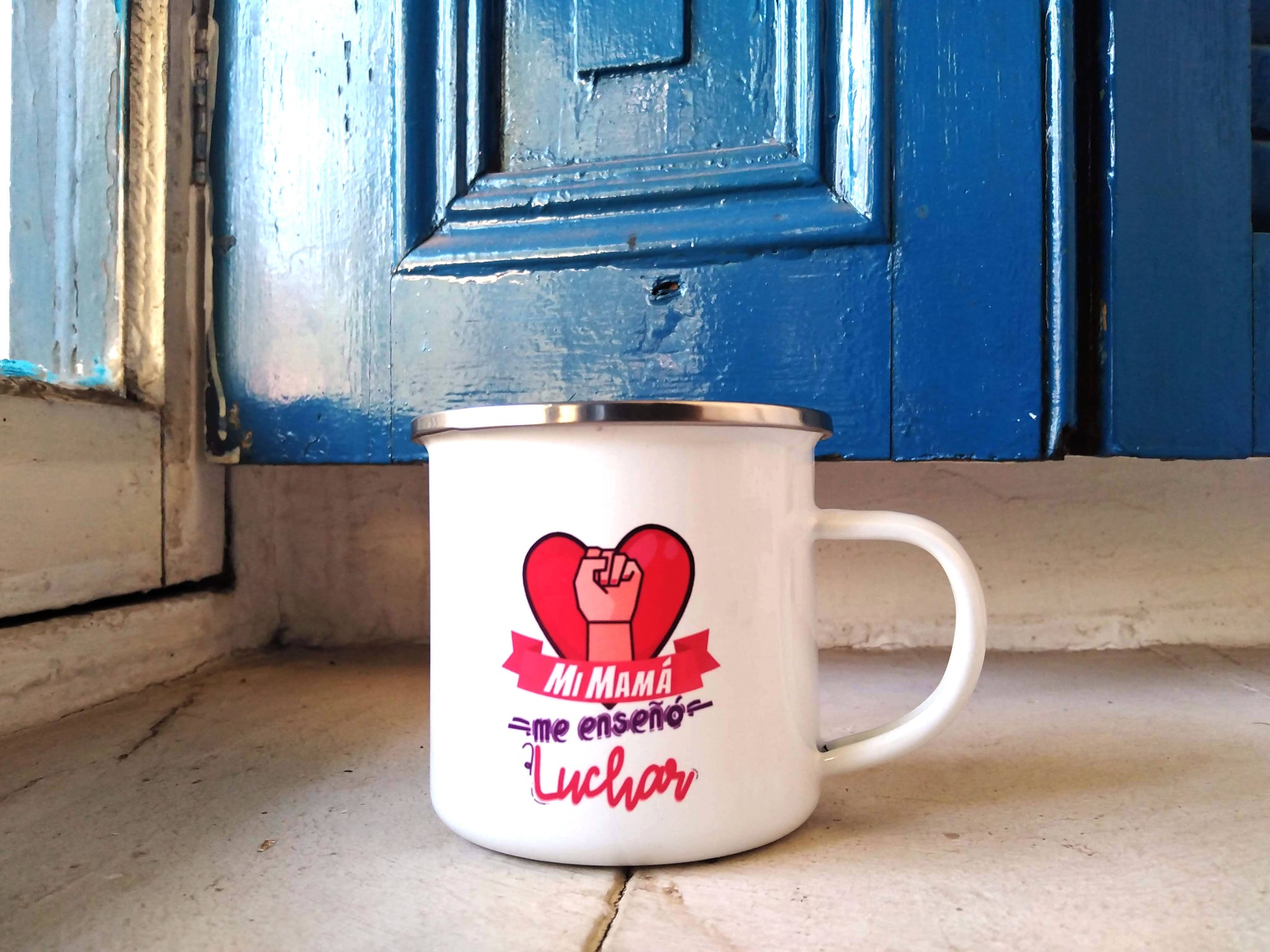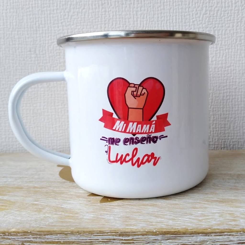 Tazón Enlozado con gráfica, "Mi mamá me enseño a Luchar". Ideal para regalar a las super mamás.