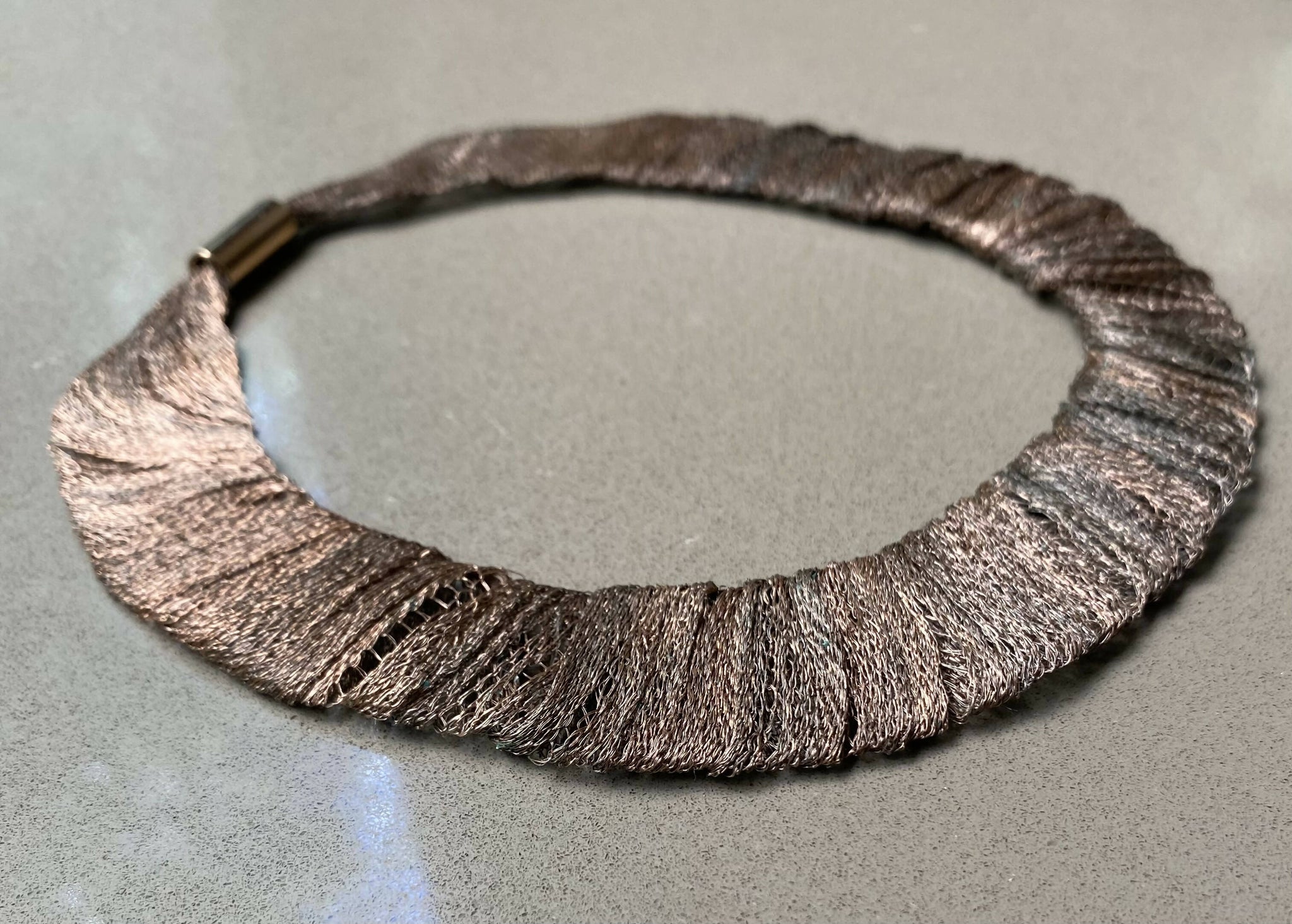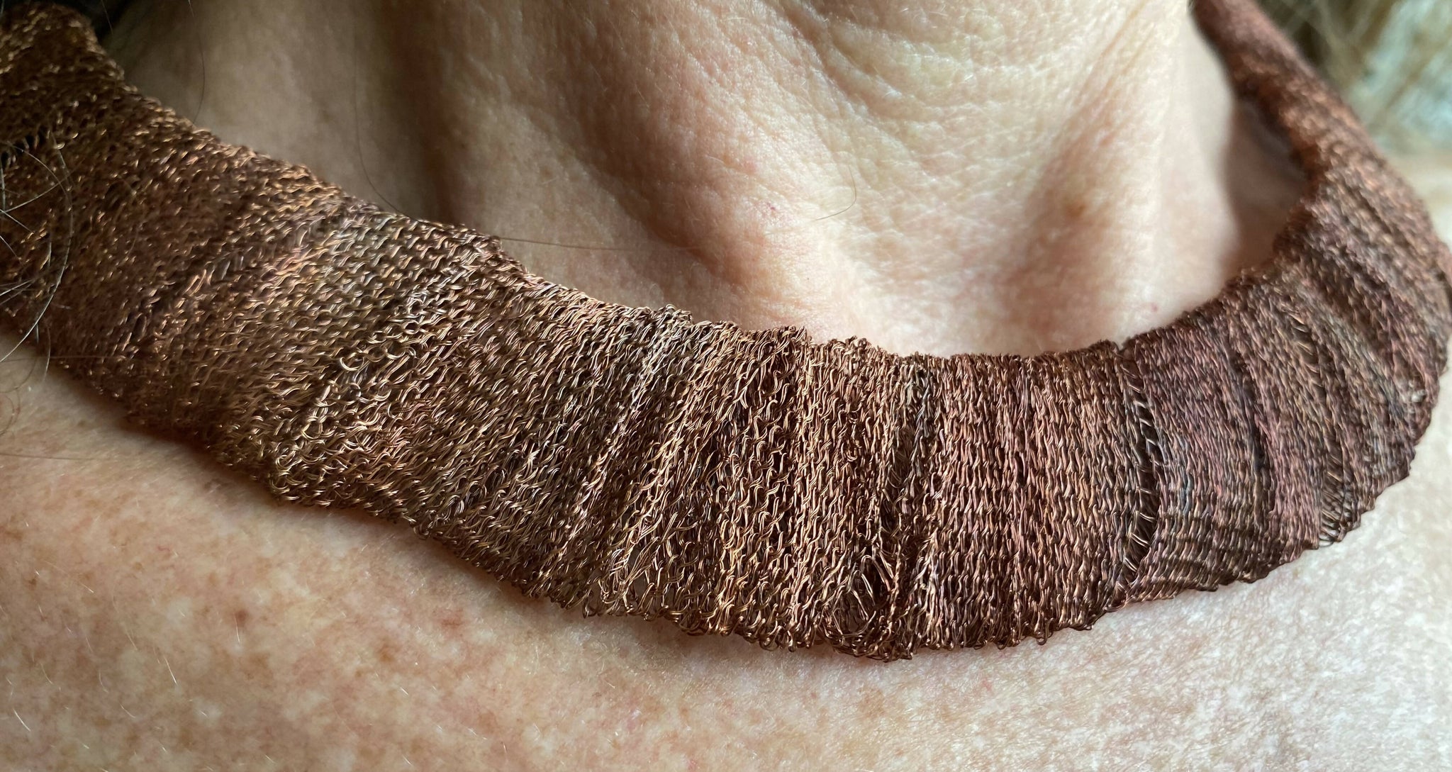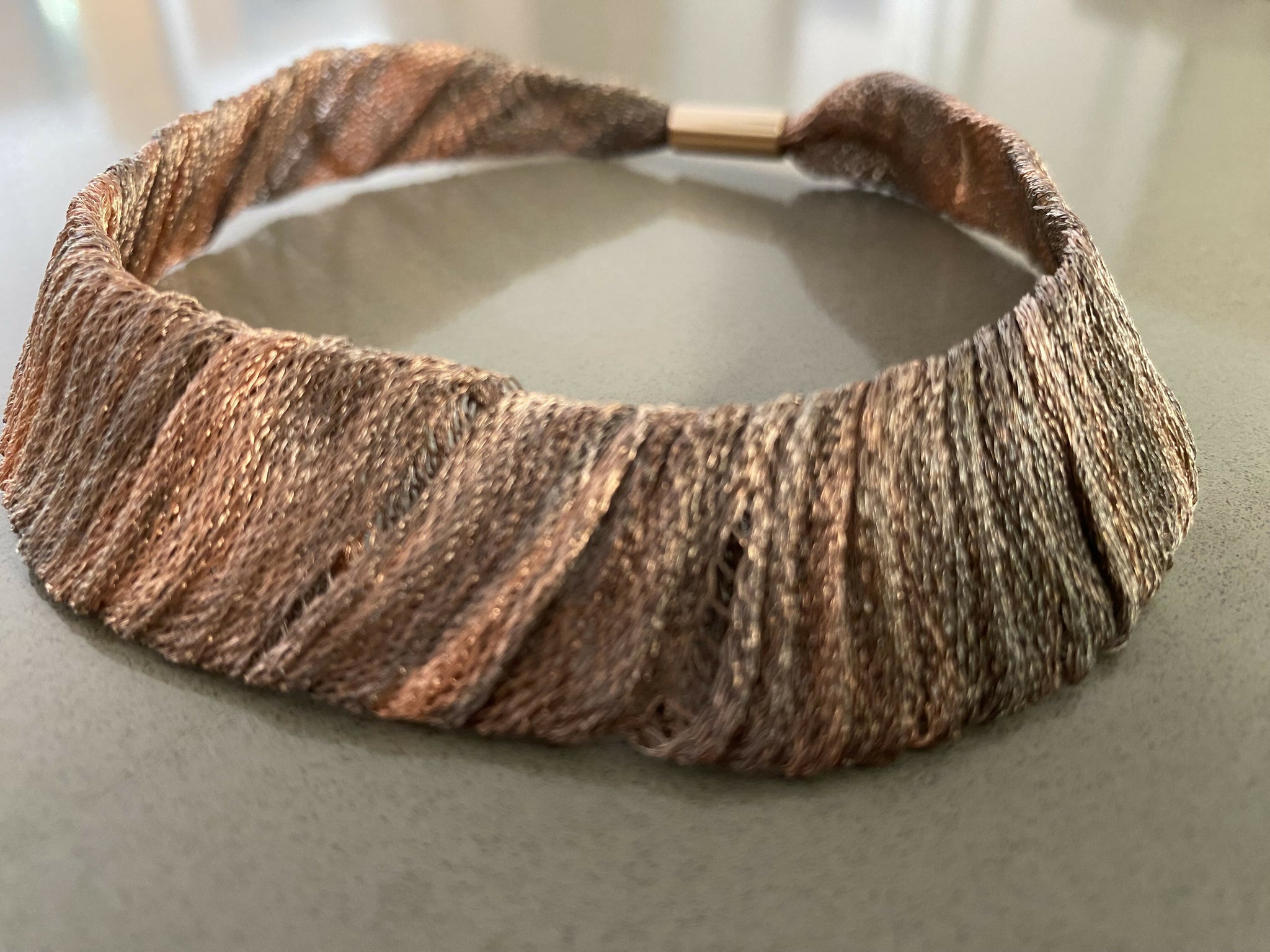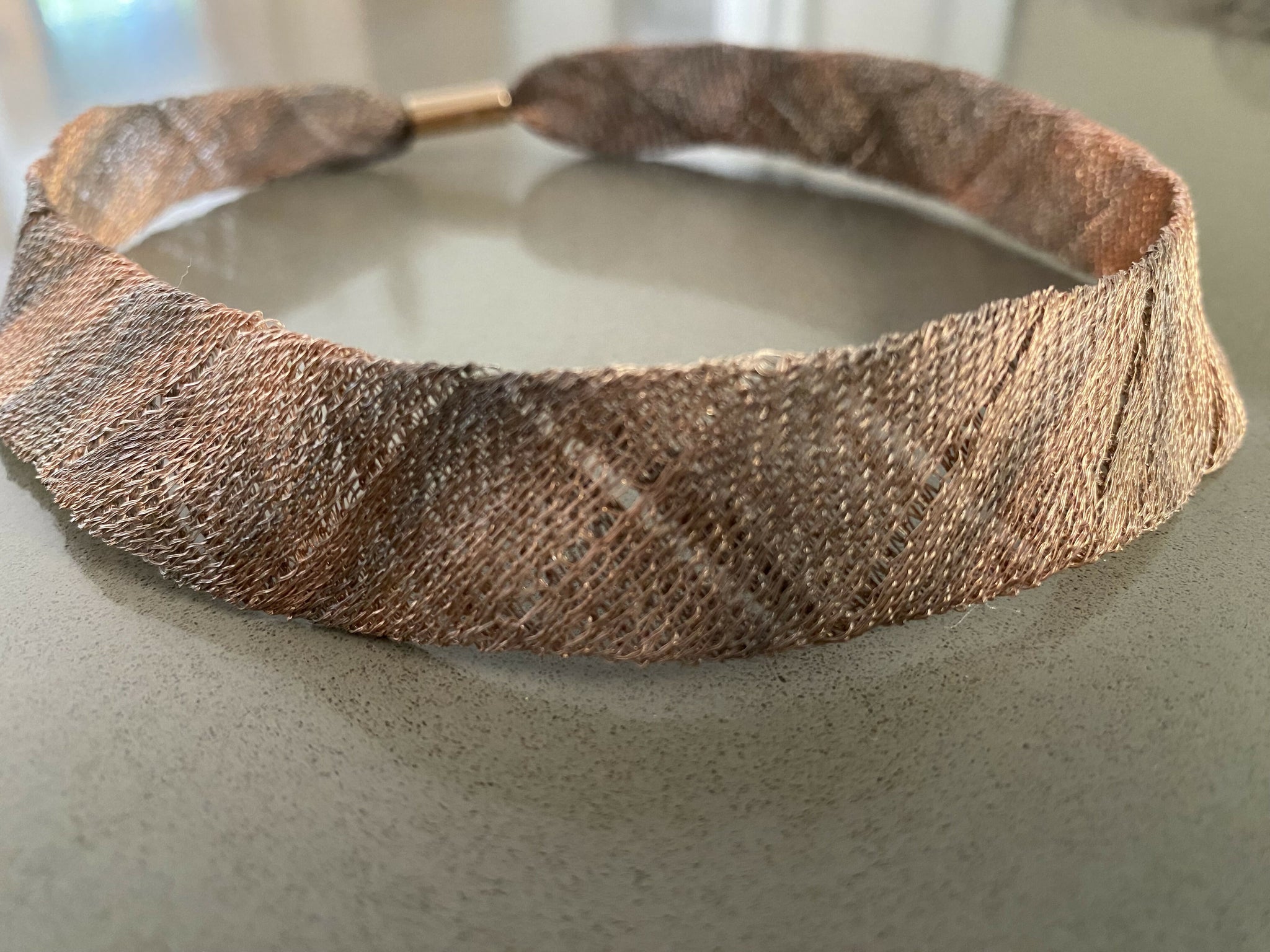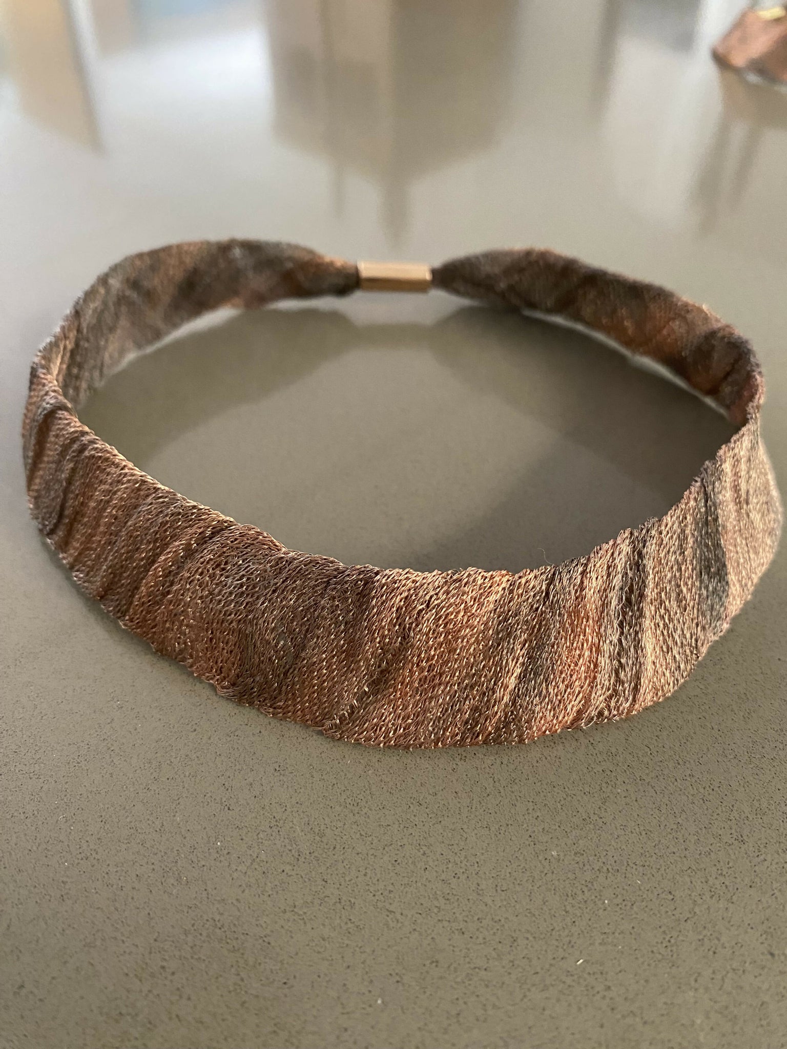 Collar tejido tubular y al sesgo con filamentos de cobre esmaltado.