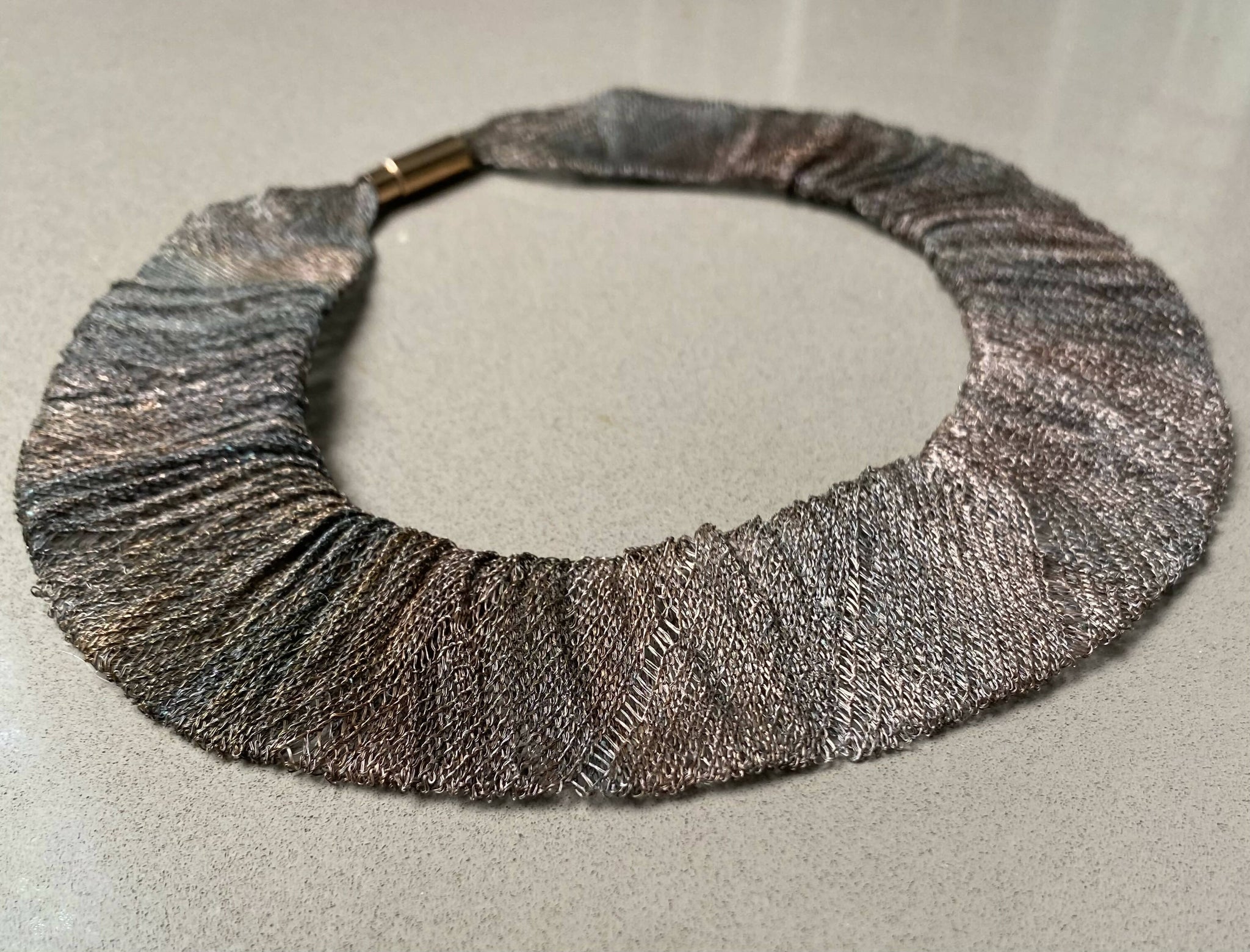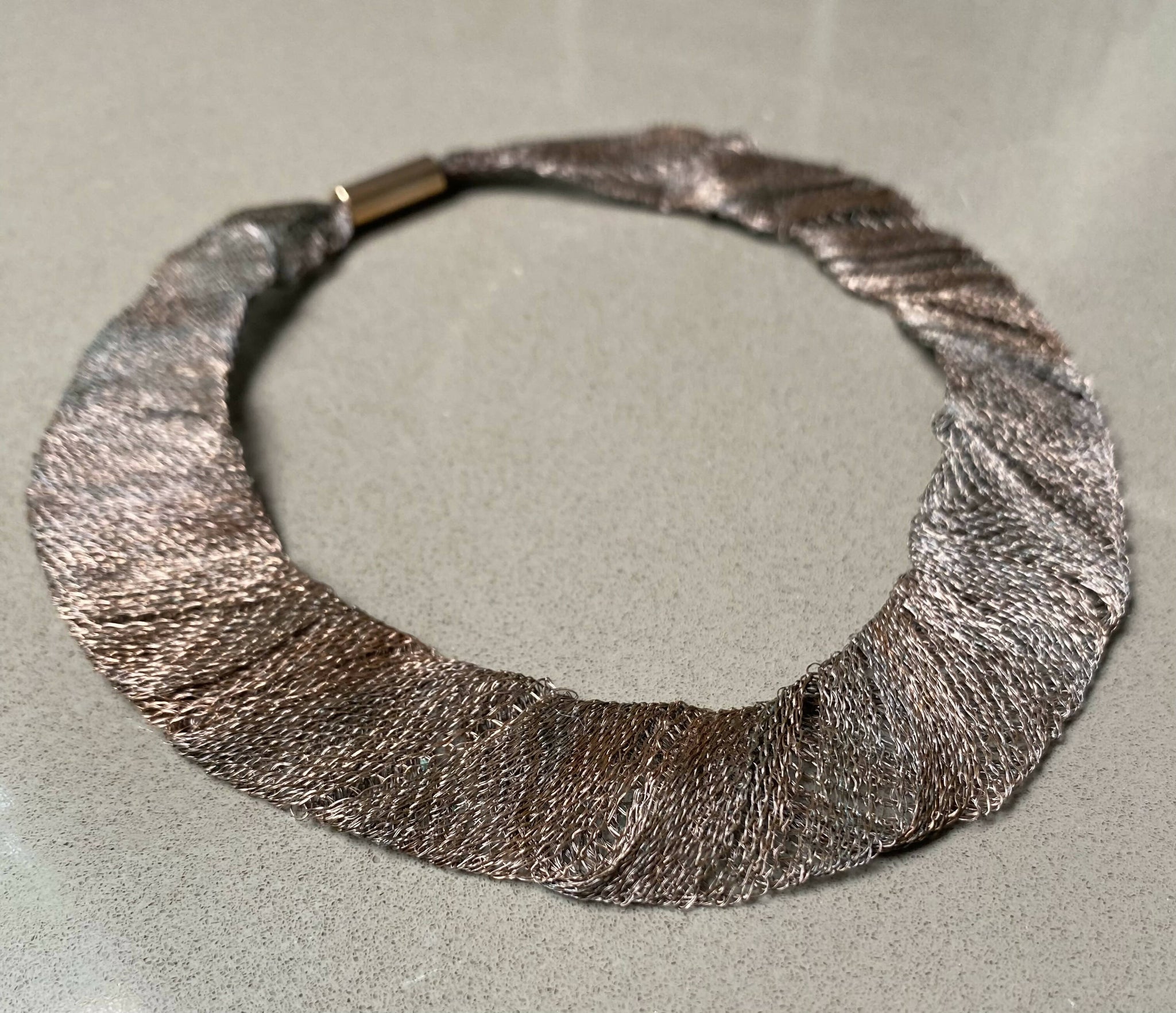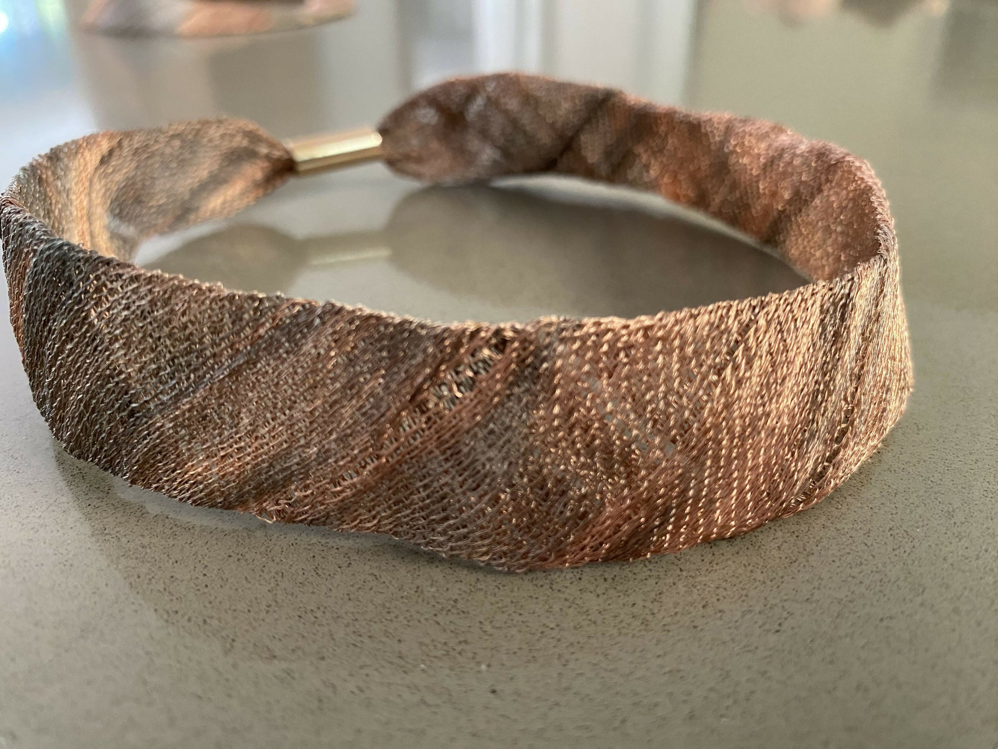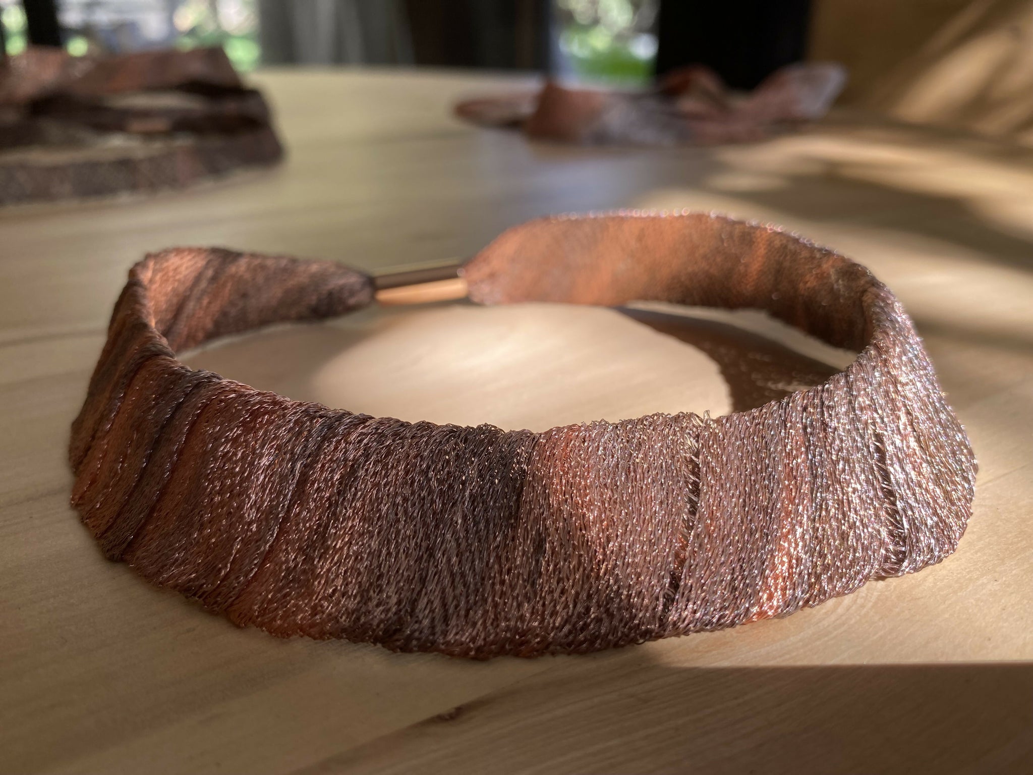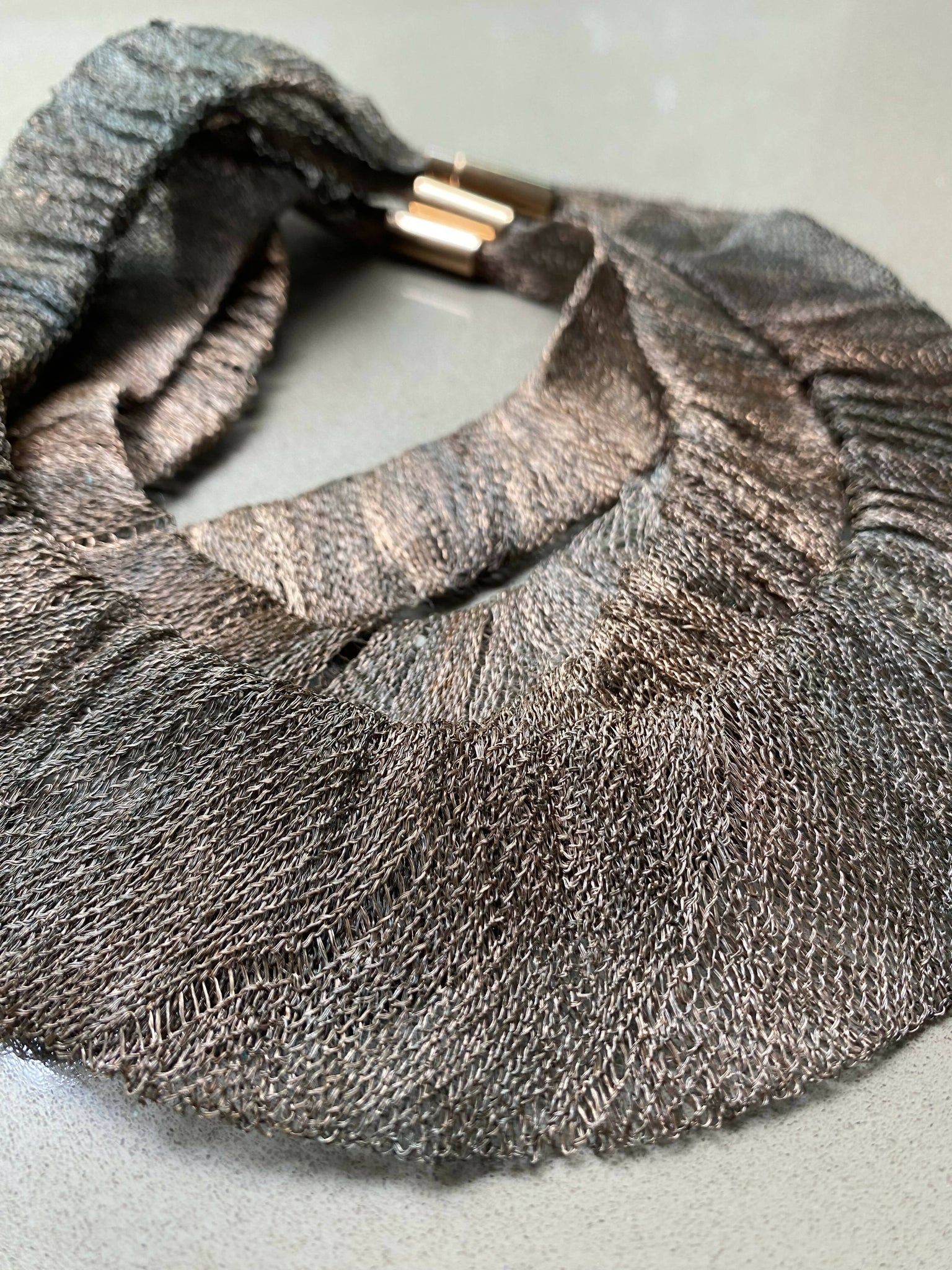 Collar tejido tubular y al sesgo con filamentos de cobre esmaltado.