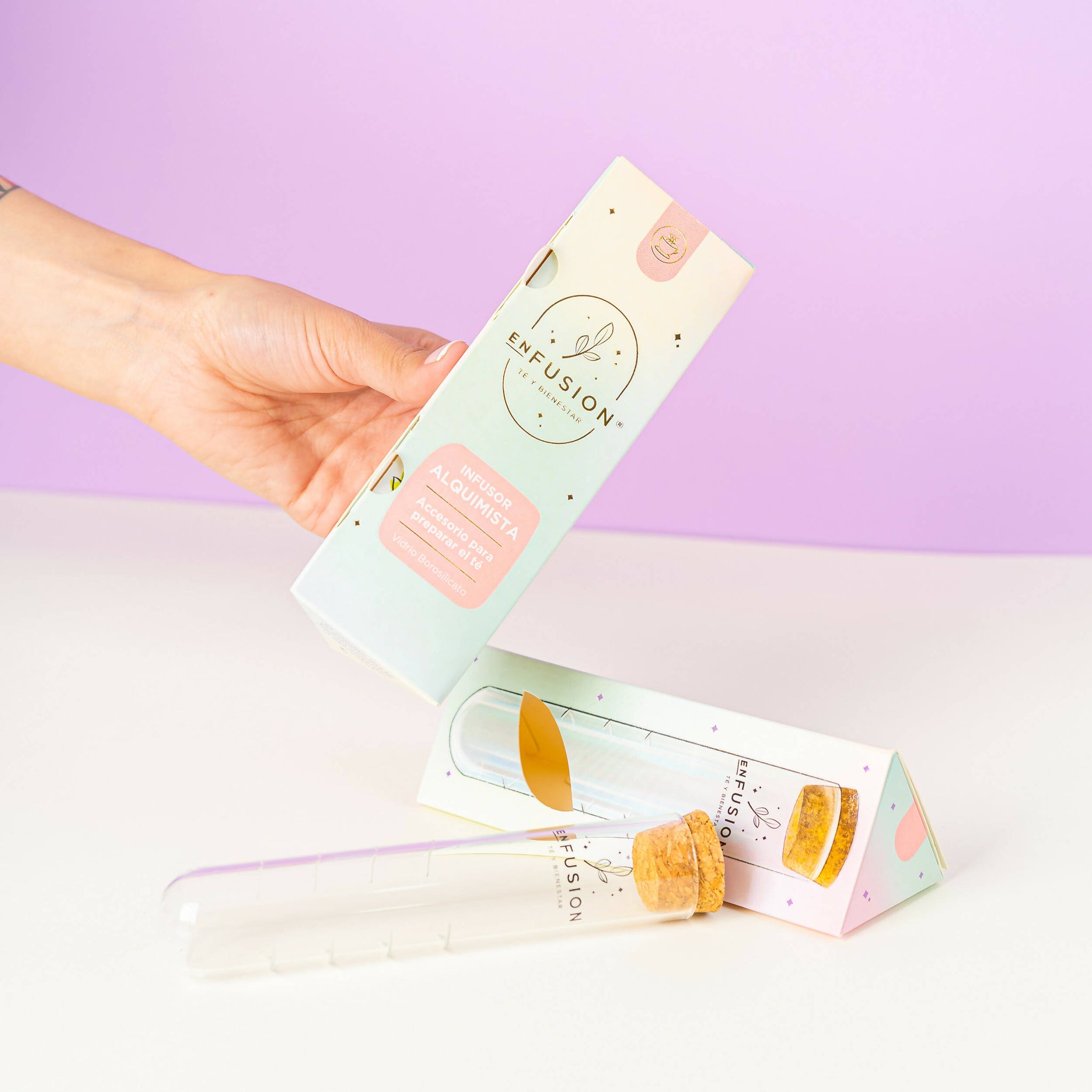 El material del infusor es vidrio borosilicato, material que soporta fuertes cambios de temperatura! Además, es un vidrio súper grueso, que lo hace delicado y resistente a la vez. Te invitamos a probar una nueva y mejorada forma de infusionar tus hebras de té y disfrutar de un momento mágico de Alquimia con Enfusion!
