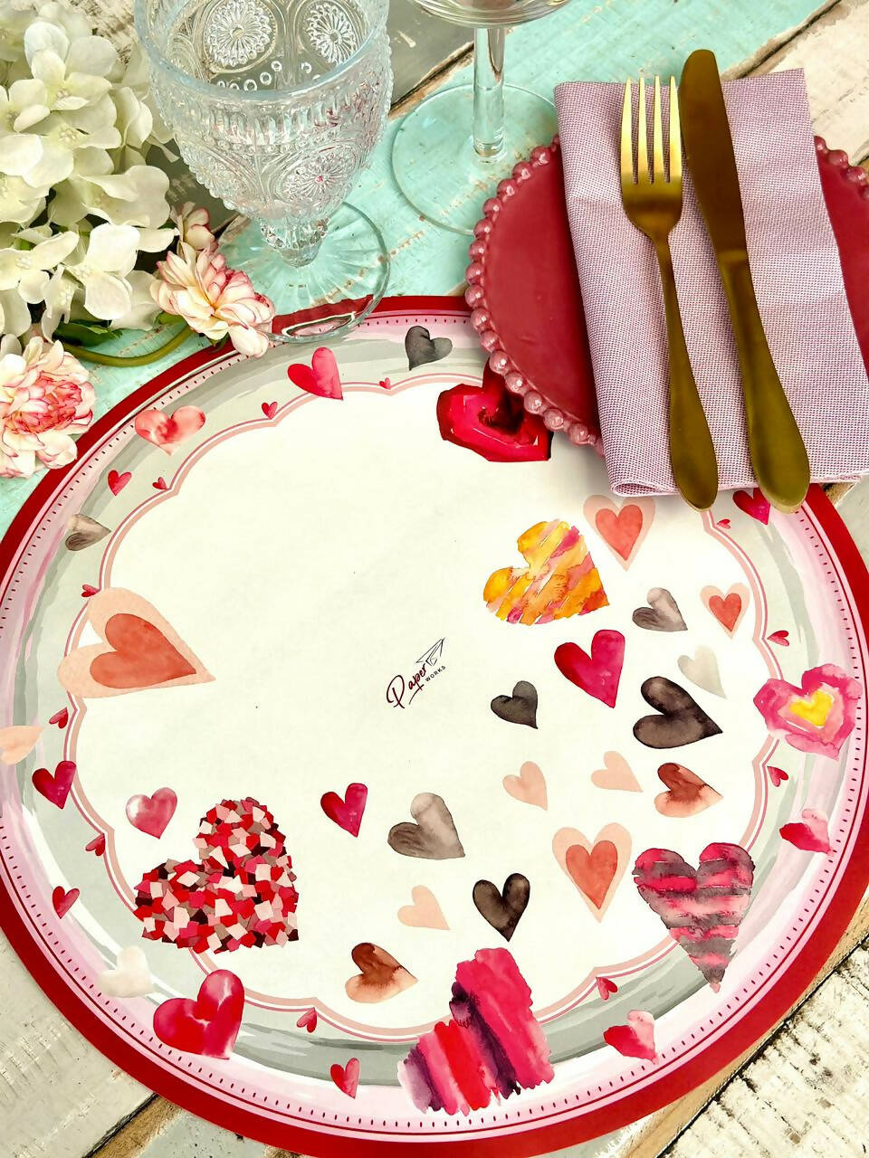 Individual Corazones Acuarela