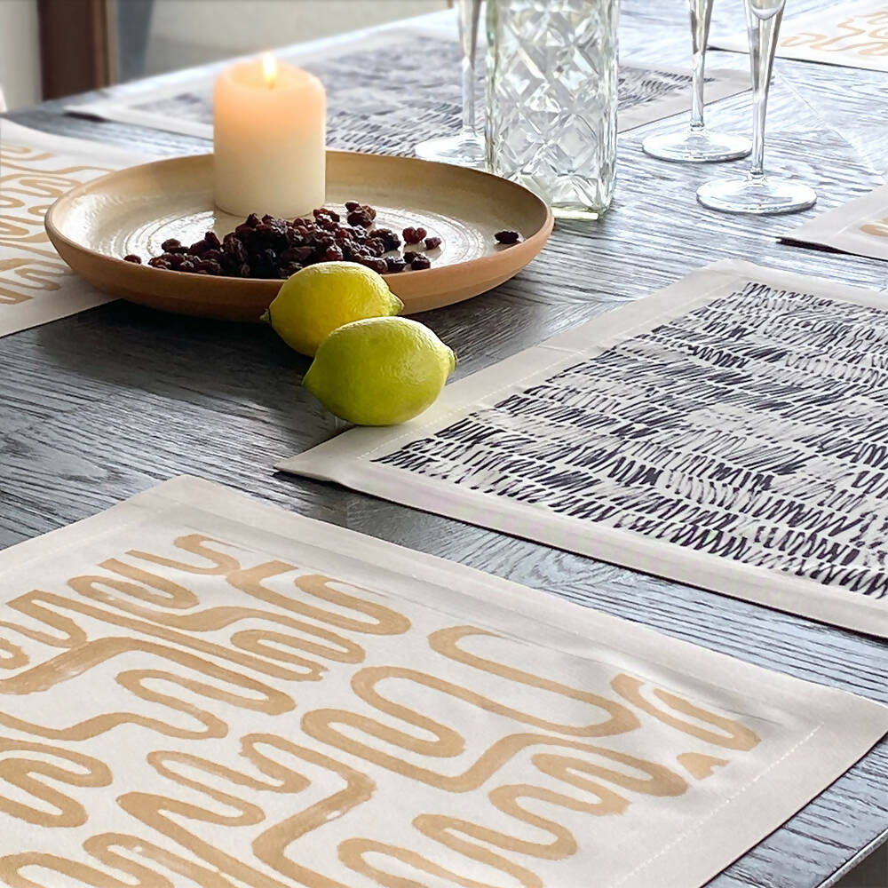 Set de Individuales tela impermeable color fondo crudo, estampados 36 × 42 cm.
