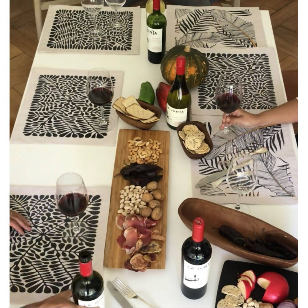 Set de Individuales Linet color fondo crudo, estampados 36 × 42 cm.