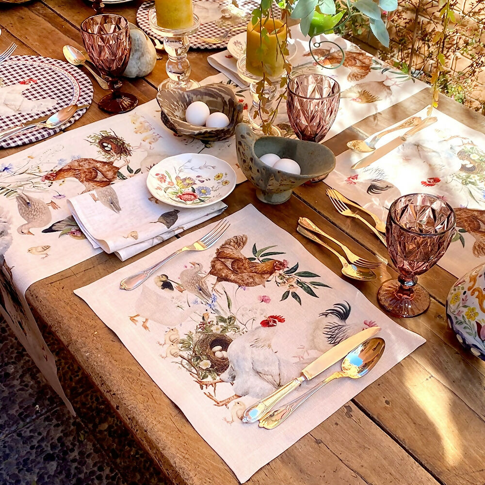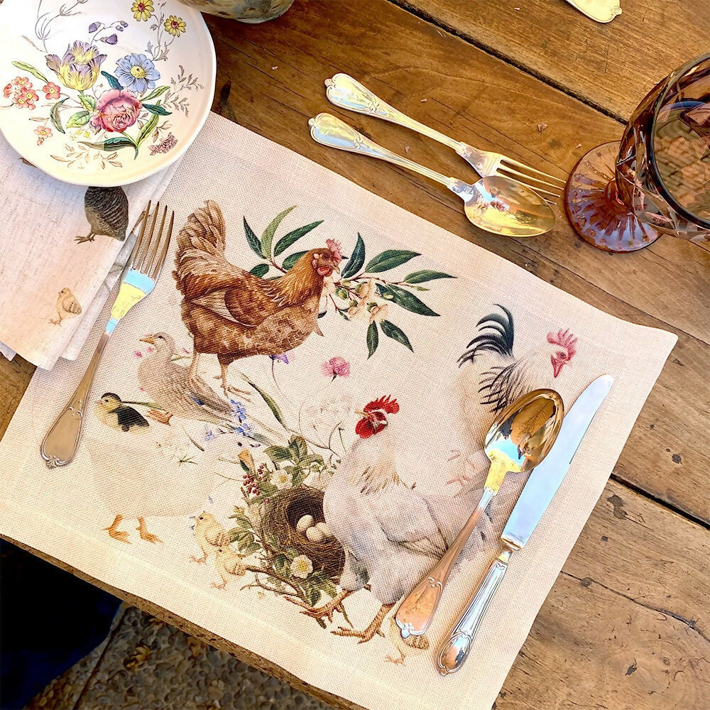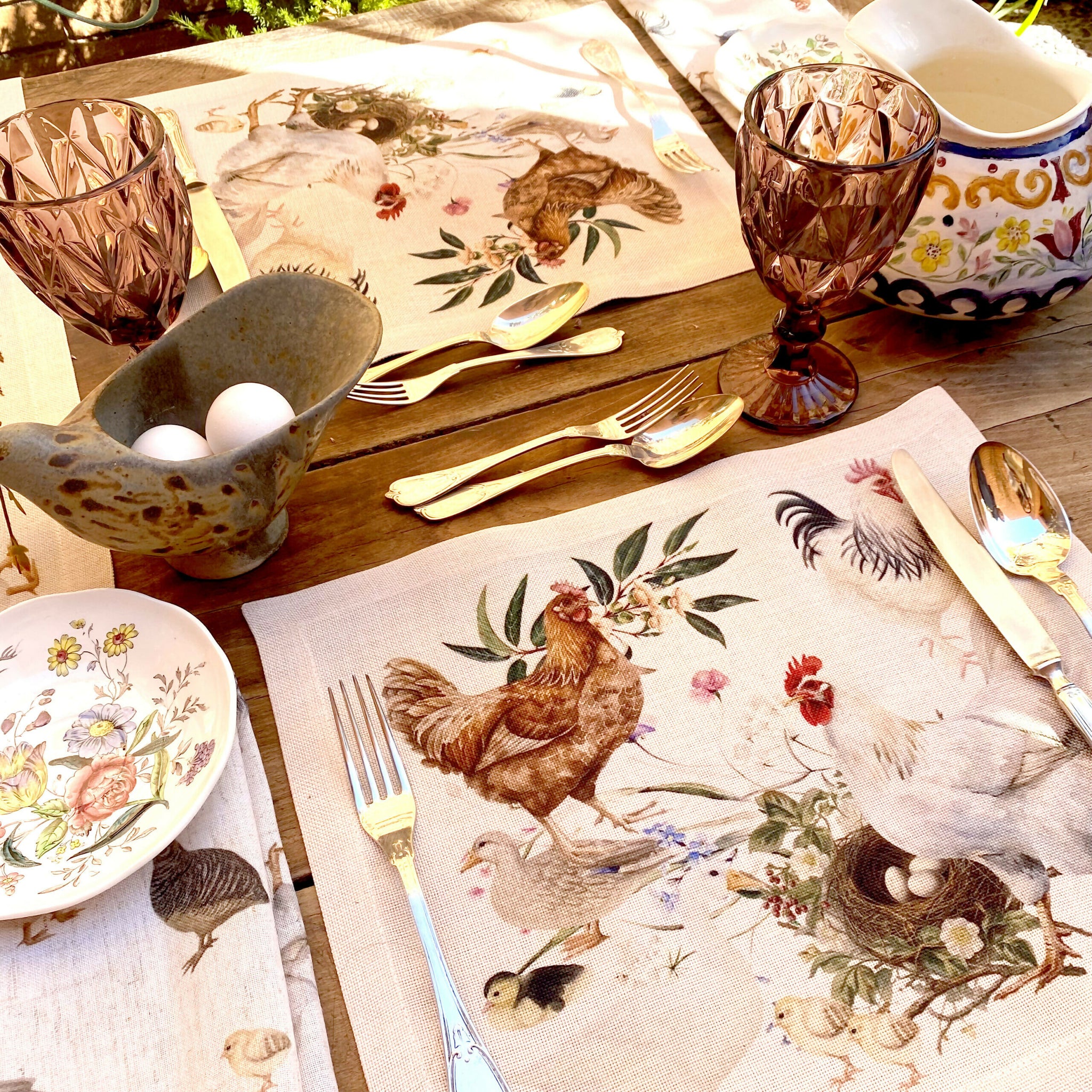 Precioso set de individuales en linet natural estampados, 36 × 42 cm.