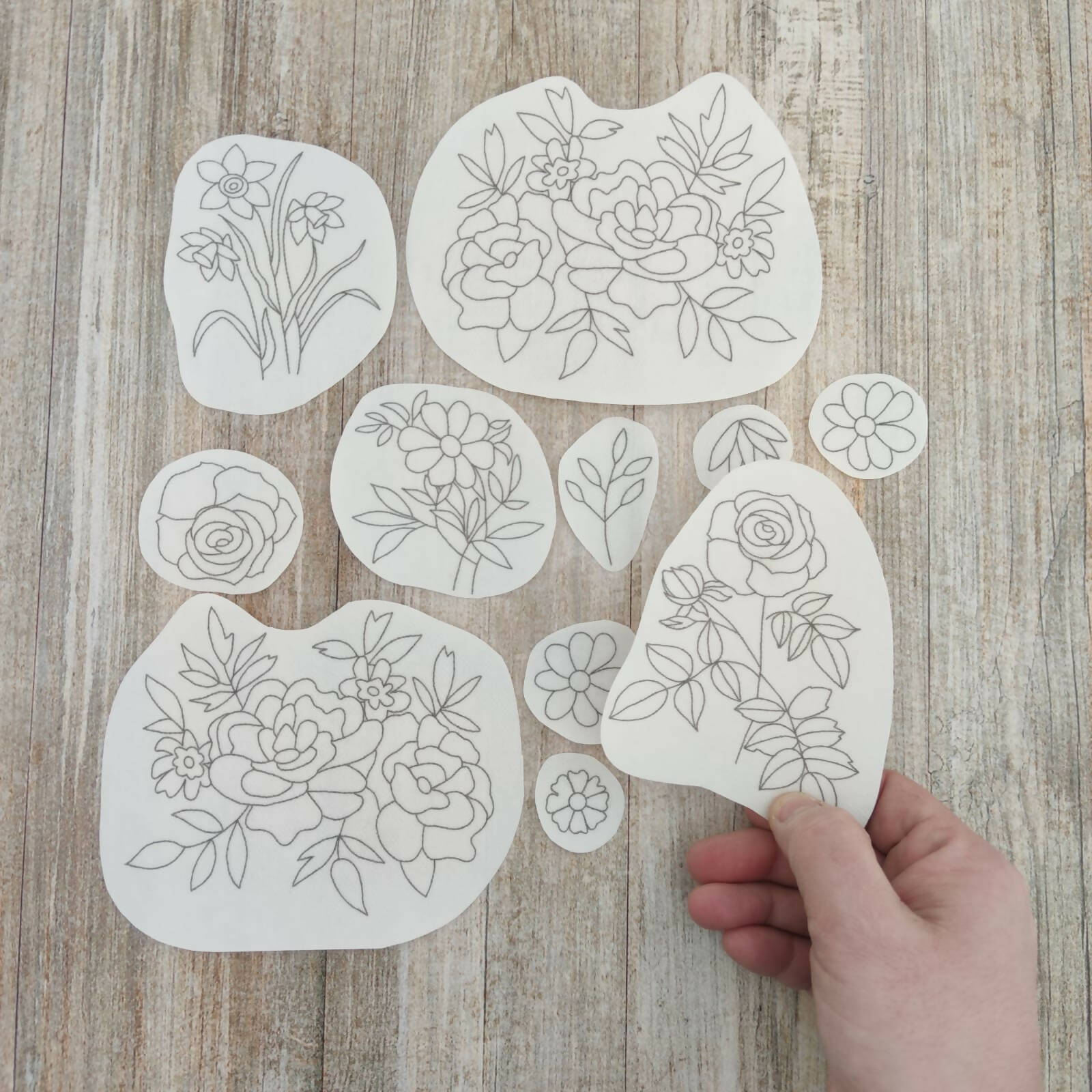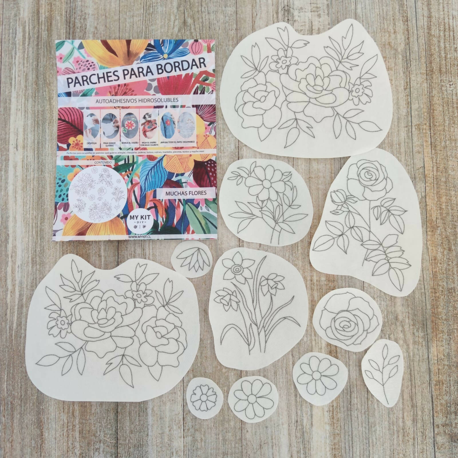 • 11 parches hidrosolubles, (Se deshacen con el agua) de diferente tamaños y diseños con flores