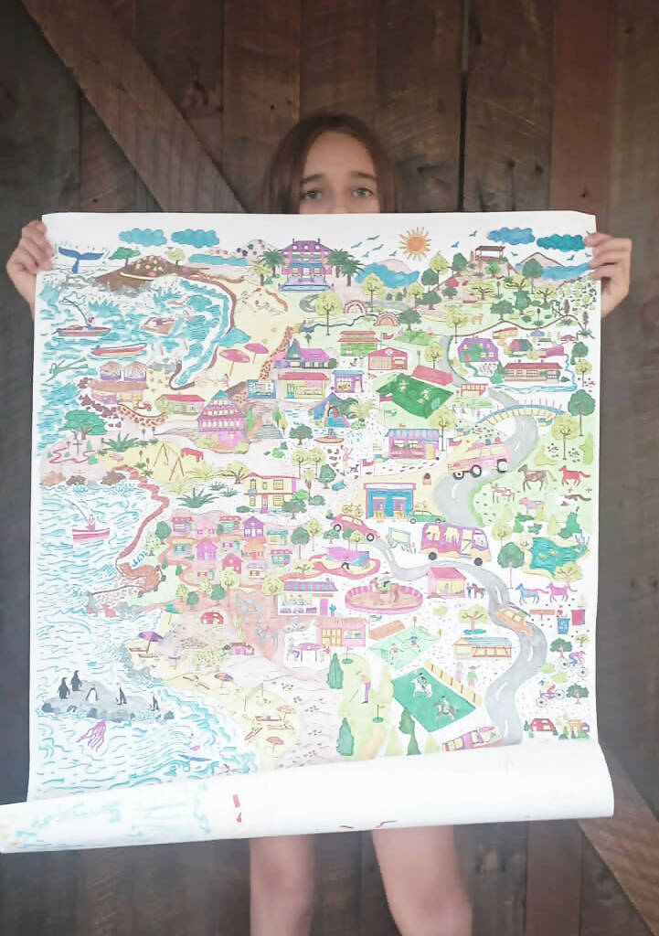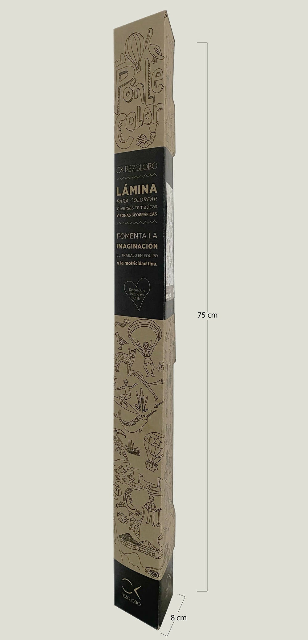Packaging: Caja ilustrada impresa en cartón microcorrugado de 75 cm de largo con sticker personalizado según la temática de la lámina. Perfecto para regalar y para transportar sin problemas!