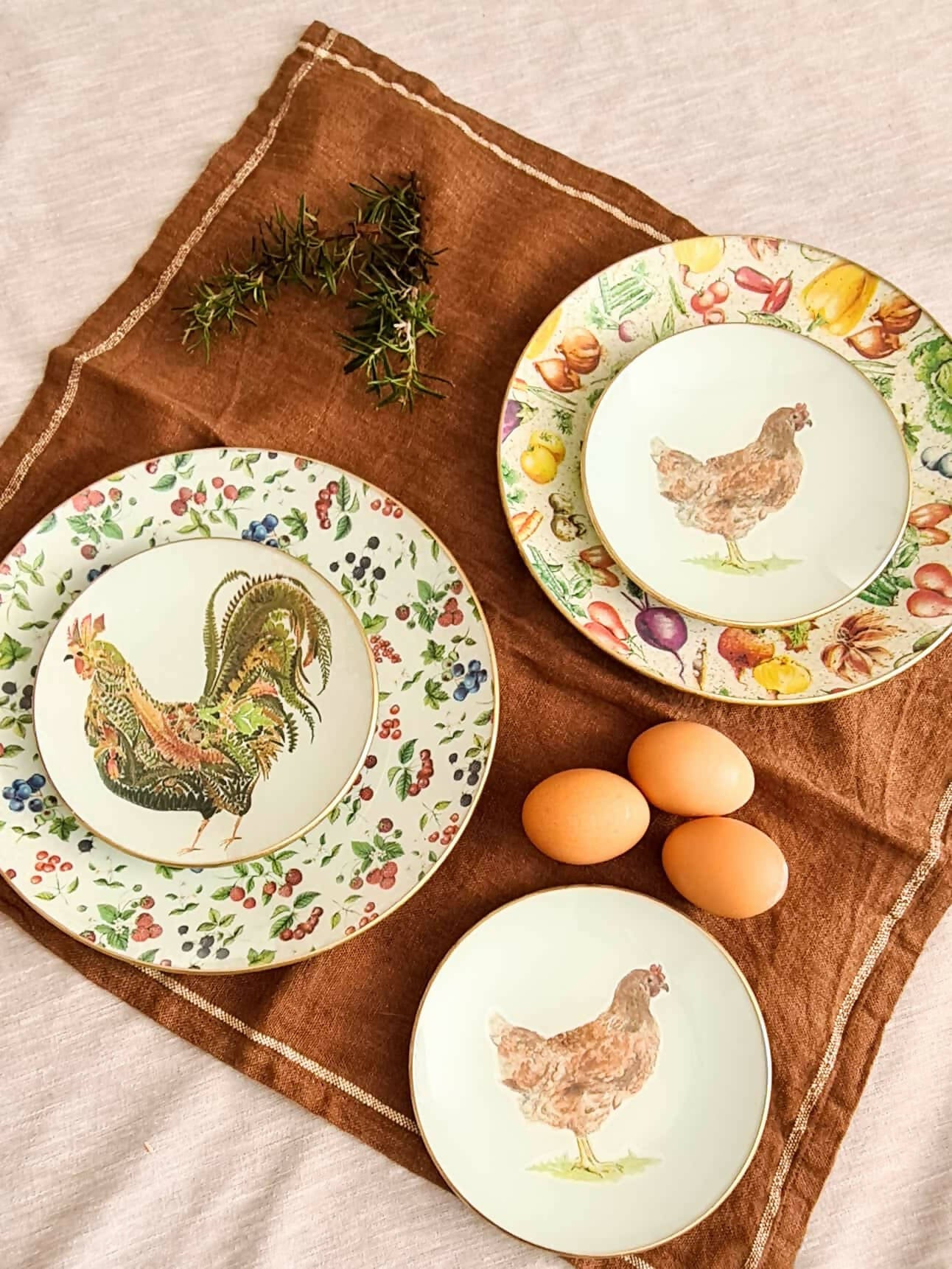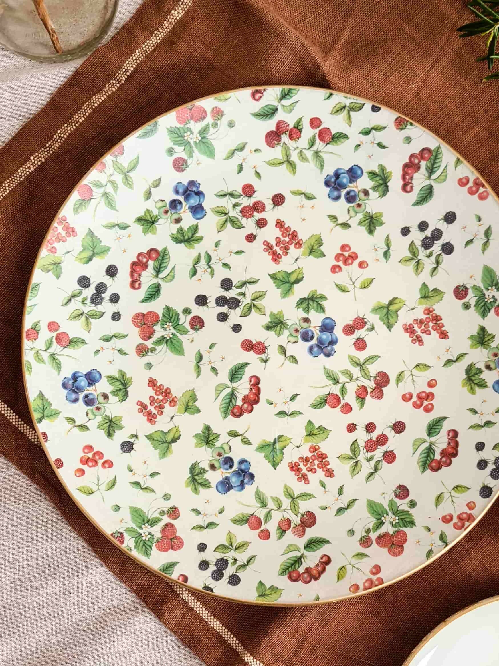 Conjunto de plato redondo de vidrio templado de 16 cm y plato redondo de 25 cm, con tratamiento artesanal de decoupage. Apto para el lavado a mano y para el uso de comidas o elementos calientes sobre la superficie.