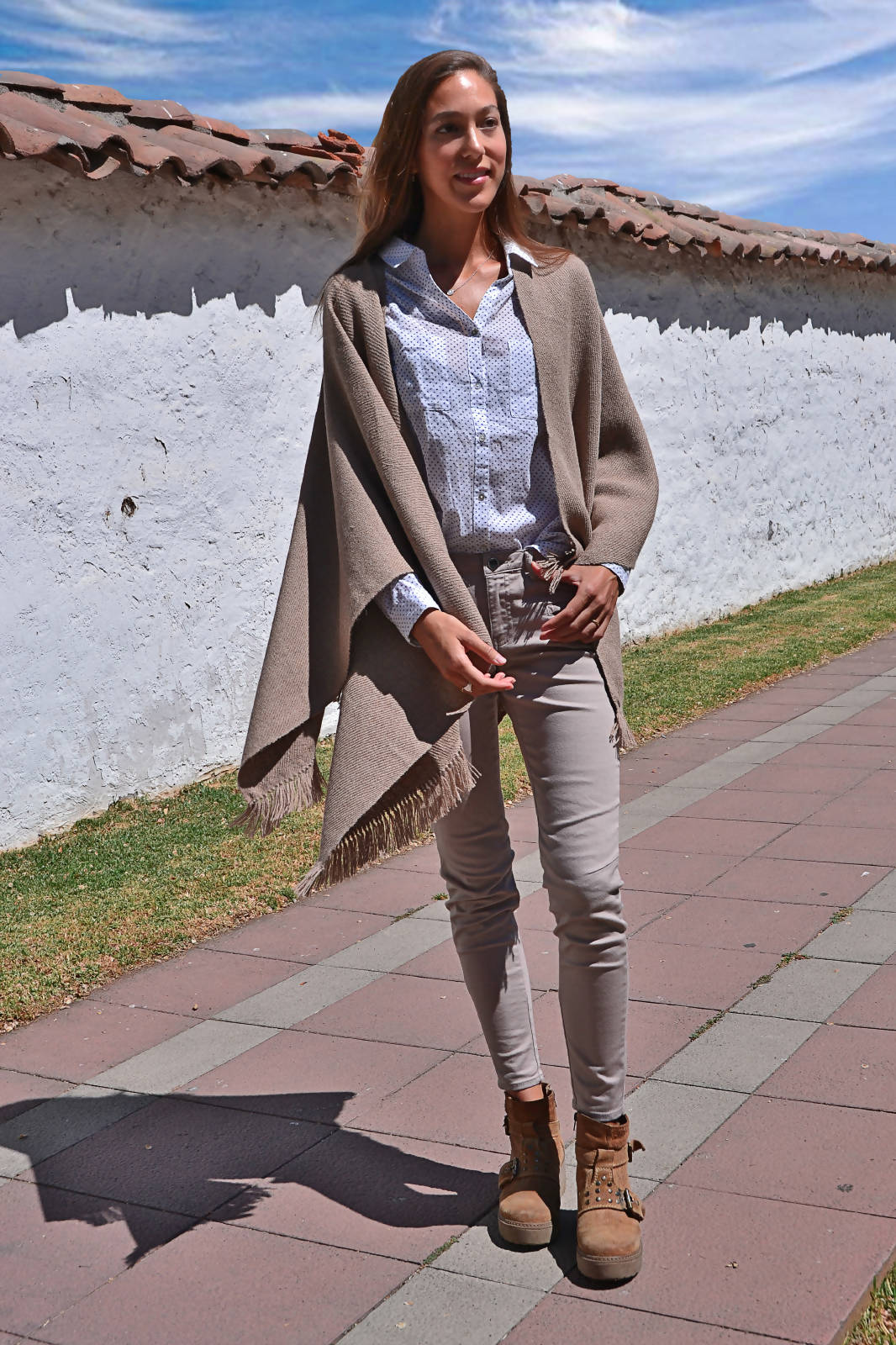 Ruana o Capa de lana 100% Baby Alpaca de tejido fino, hecha a mano.
