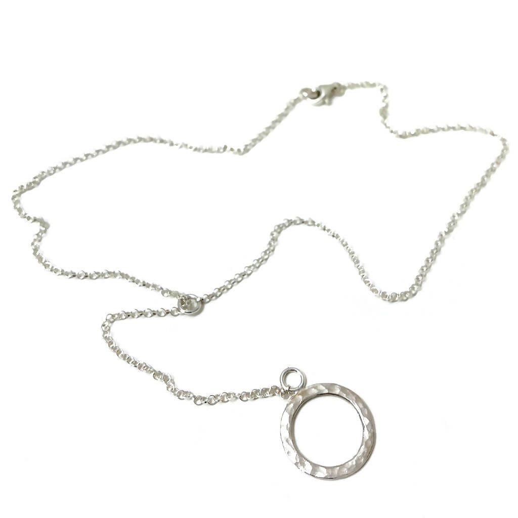 La gargantilla está realizada en plata 950, con terminaciones hechas a mano y argollas soldadas, lo que la hace muy resistente. Se ajusta al cuello gracias a una argolla que se desliza en la cadena, permitiendo que se ajuste a distintas medidas.