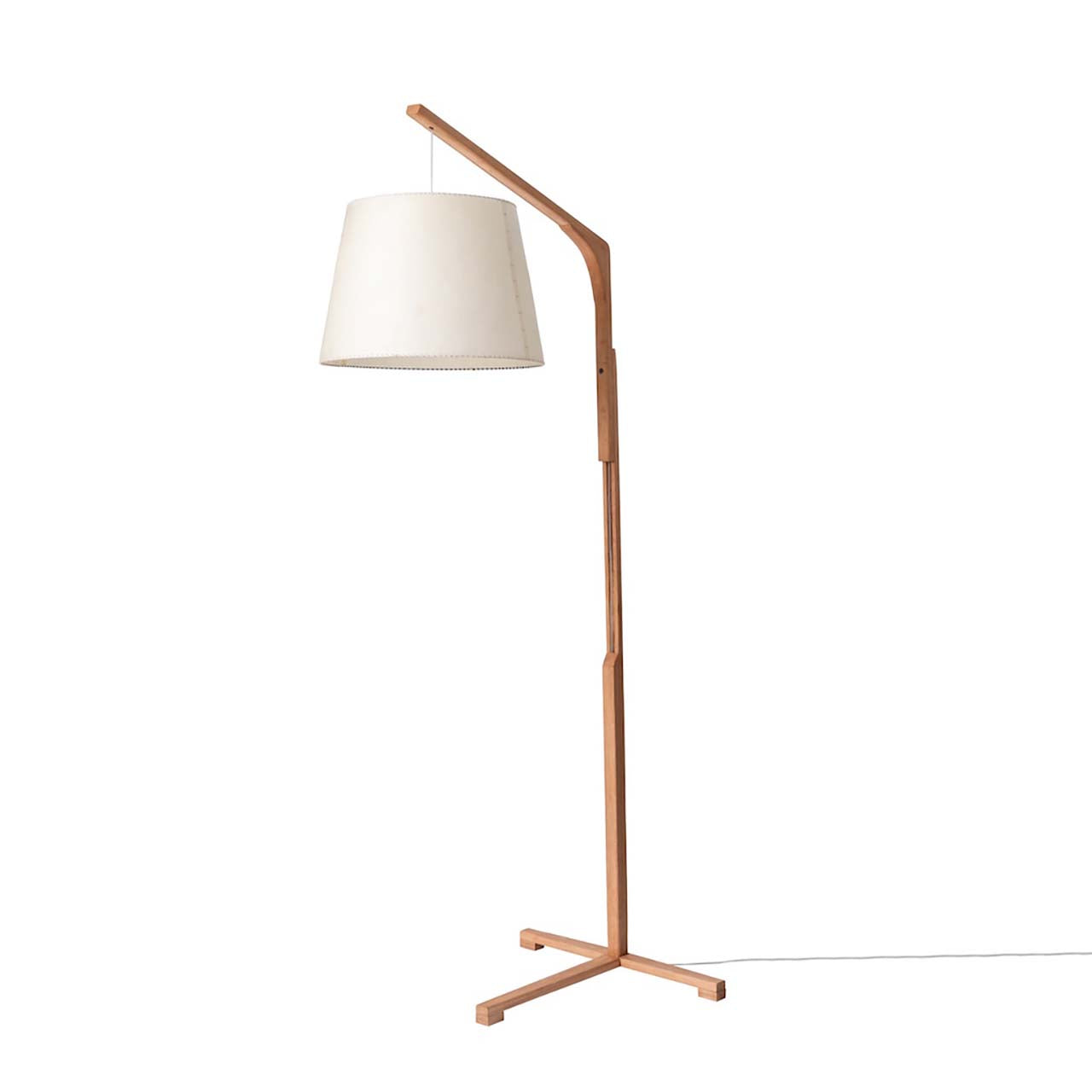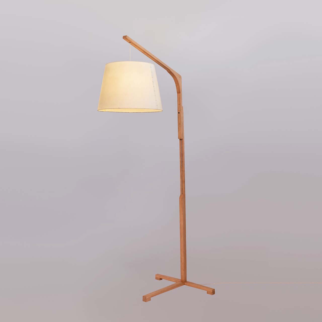 La lámpara Gran pergamino base de madera ascendente está elaborada a partir de madera nativa de coihue y pergamino. Esta luminaria de pie es de gran formato para la decoración e iluminación de lugares altos y espaciosos.