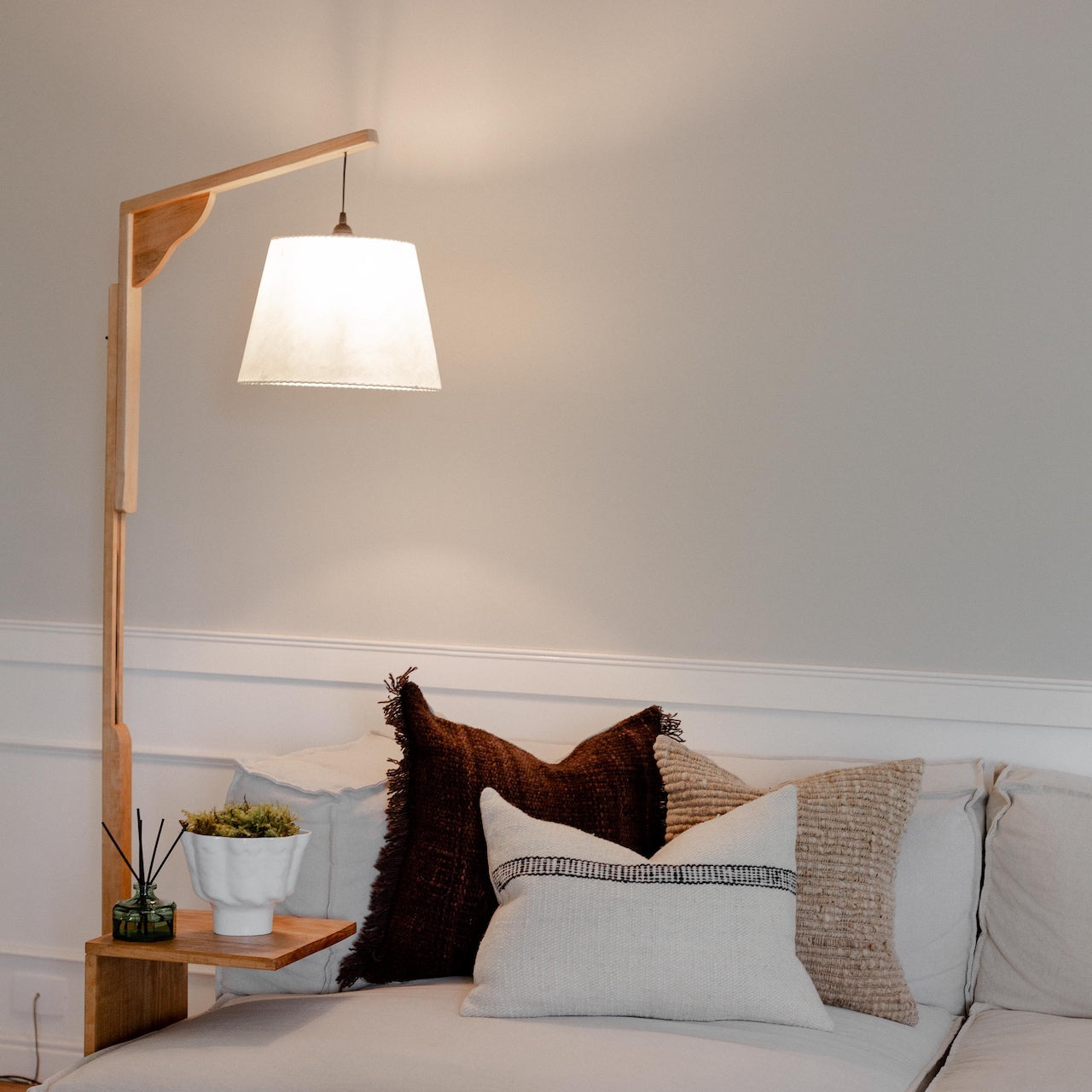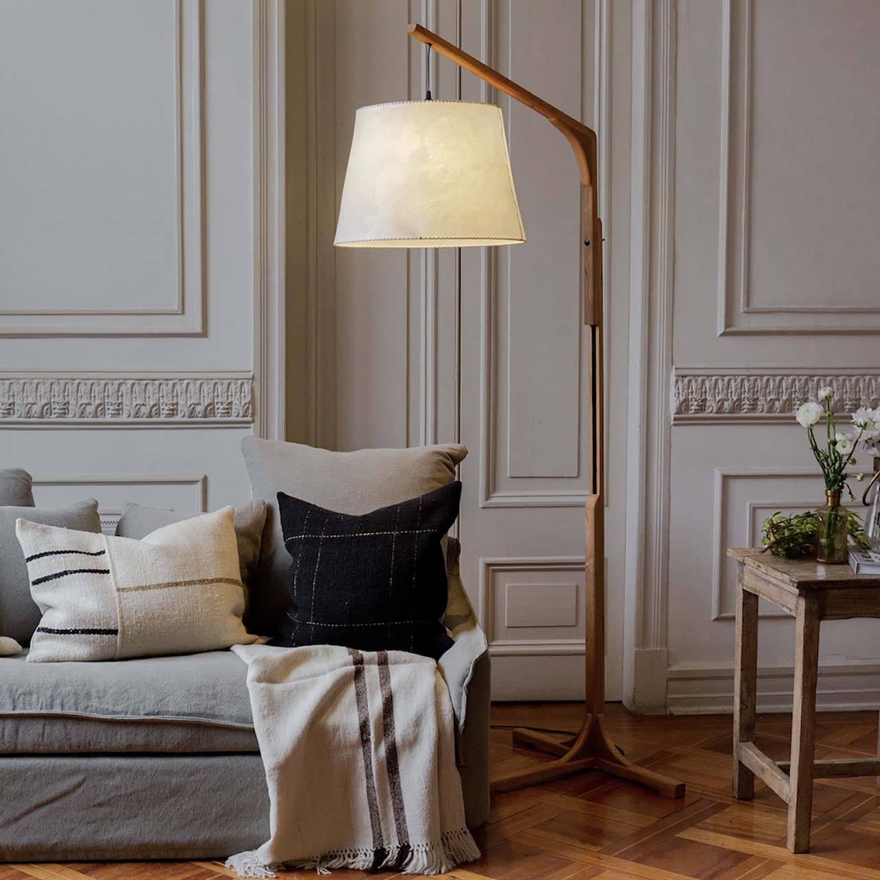 Esta lámpara es muy versátil en su montaje; para acompañar a un sofá o butaca de lectura. O para lucirla en un lugar protagónico de la casa.
