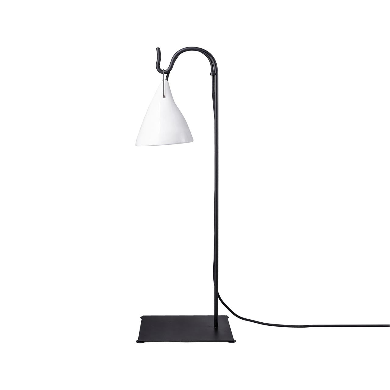 Materialidad: Pantalla cerámica, cable textil liso negro (190 cm), interruptor, enchufe, soquete, base o pie de fierro