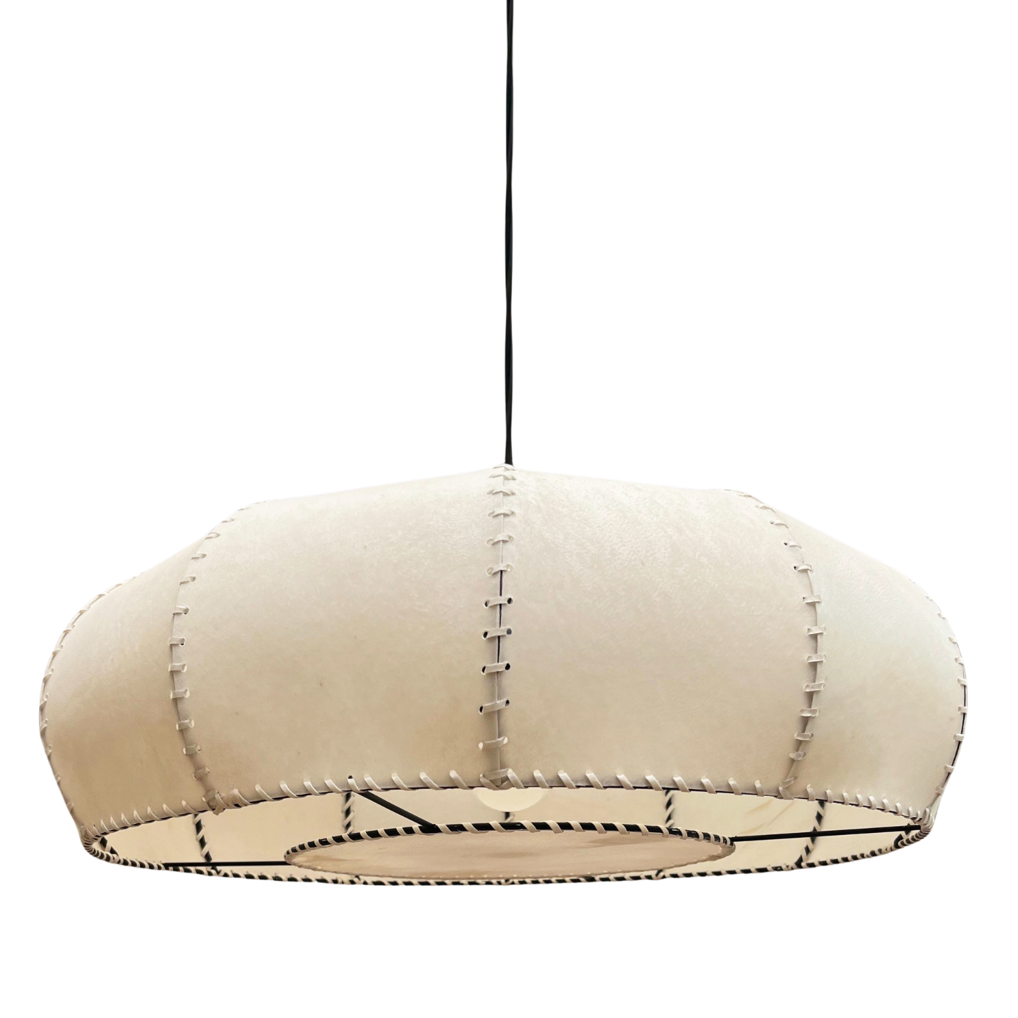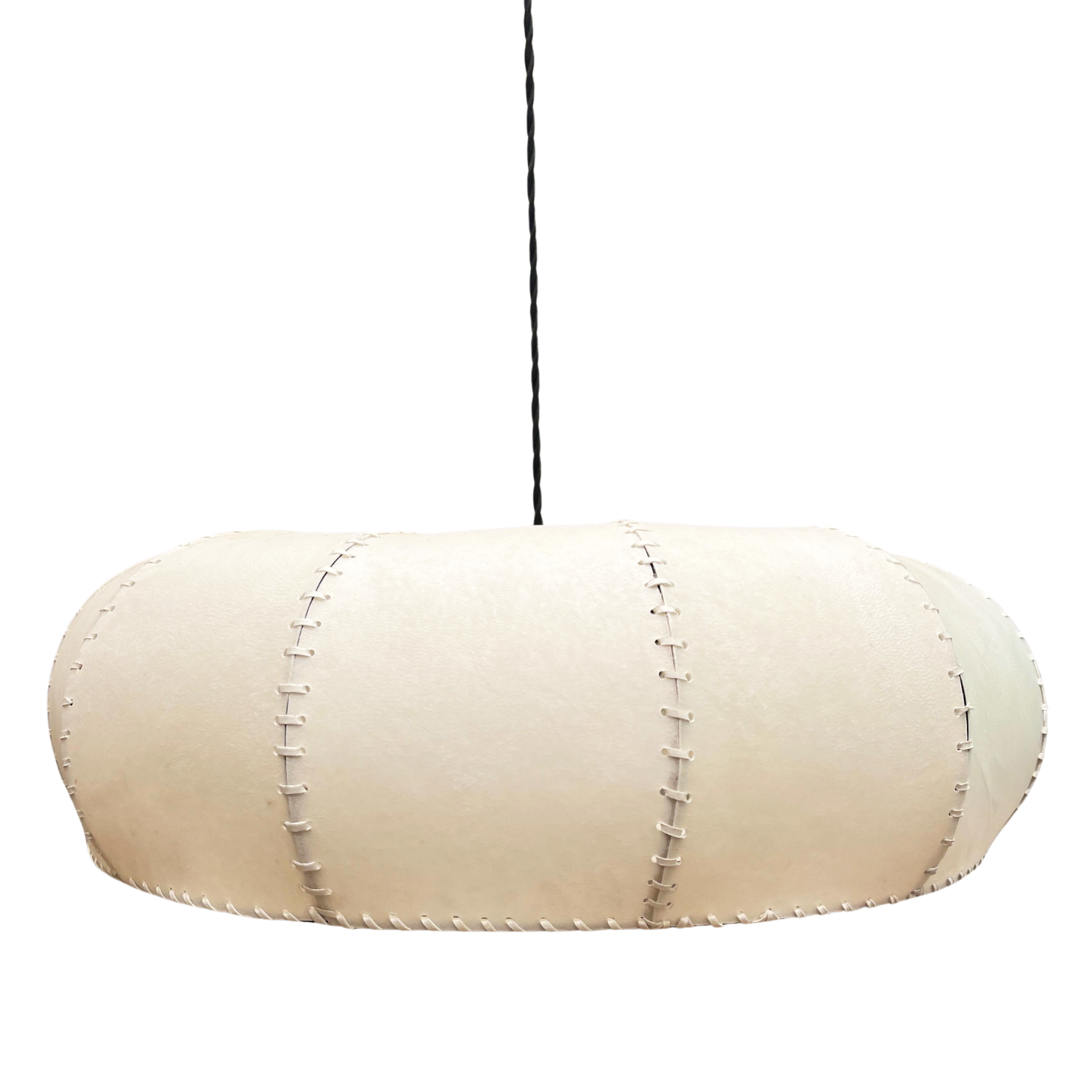 Materialidad: Pantalla pergamino y cable textil liso negro (130 cm)