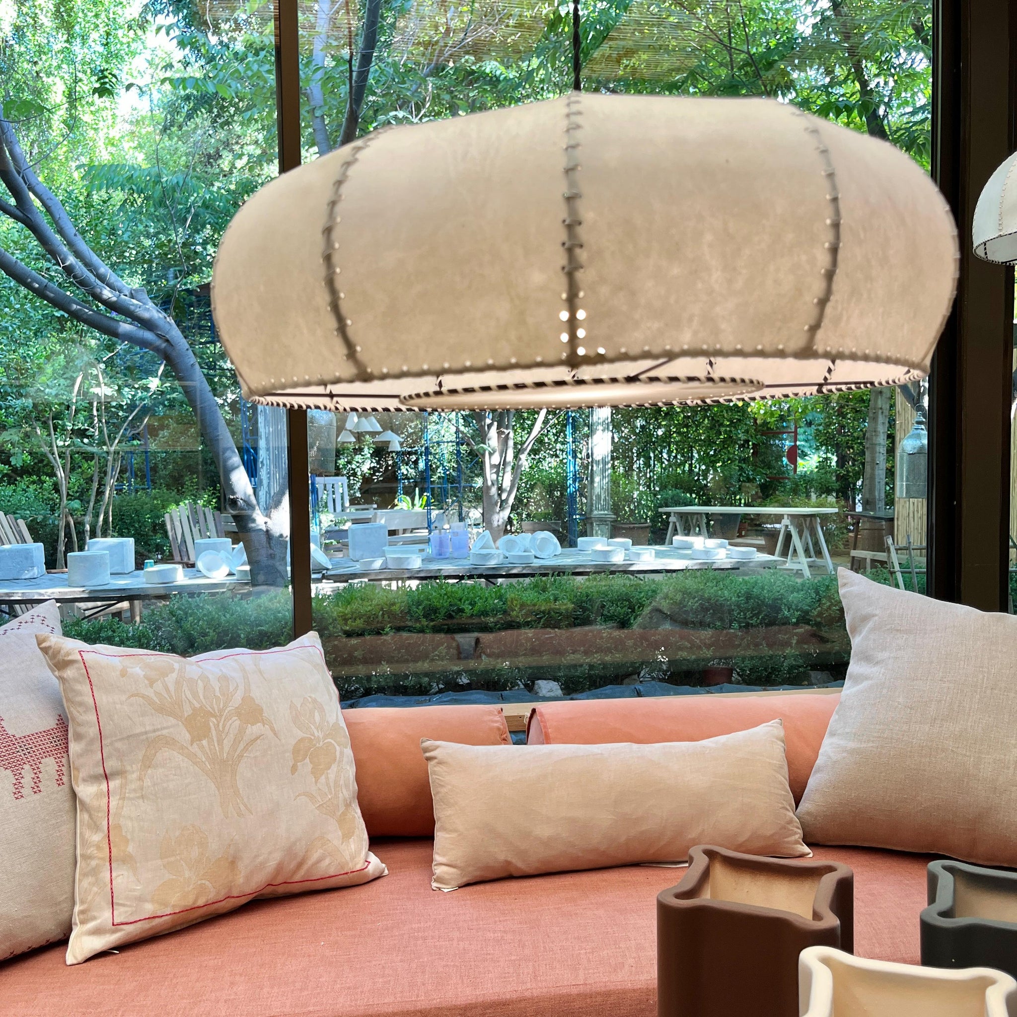 Su iluminación cálida y ambiental entrega confort visual, ayudando a crear un ambiente acogedor y contemplativo. En su acabado artesanal aparece la huella de la mano de este extinto artesano.