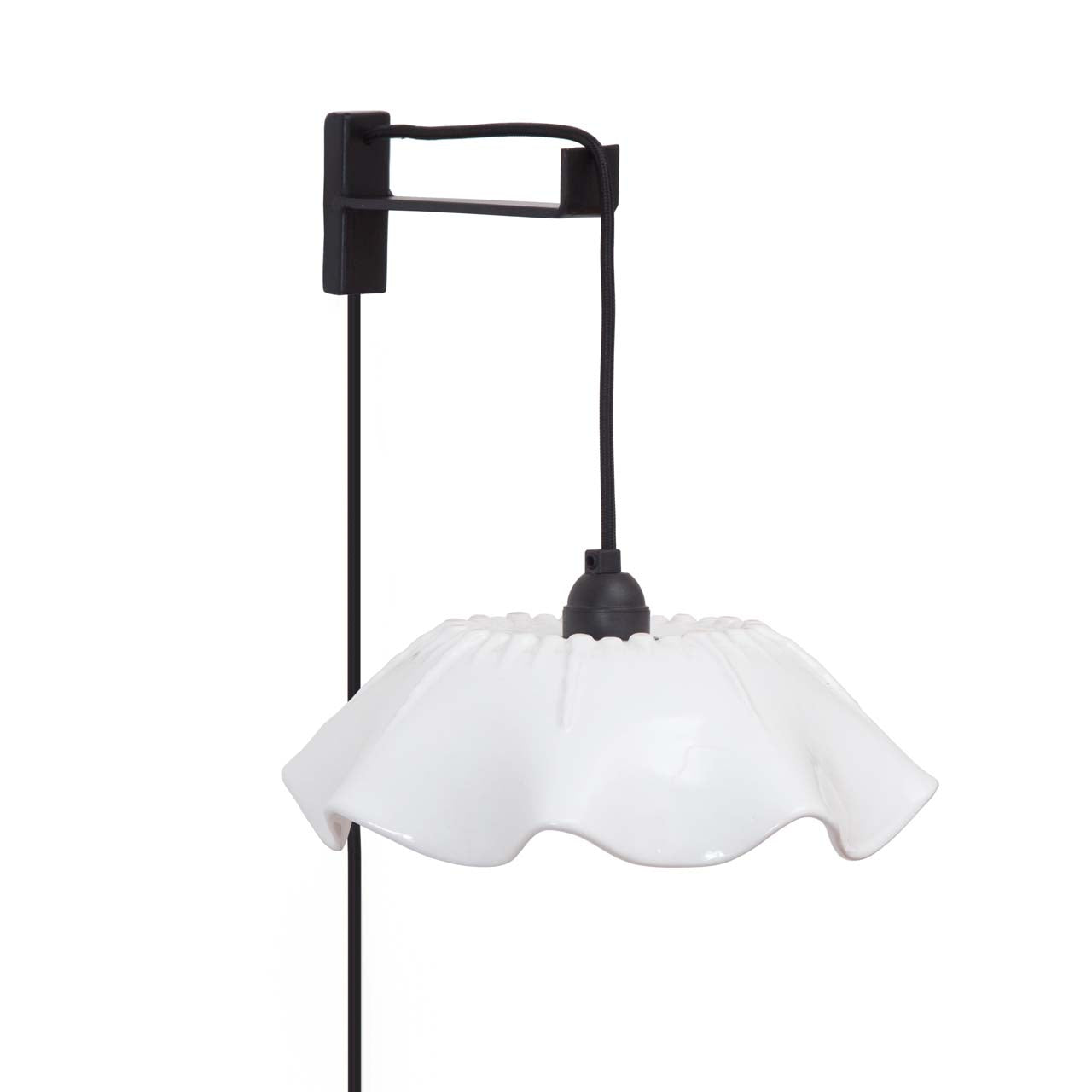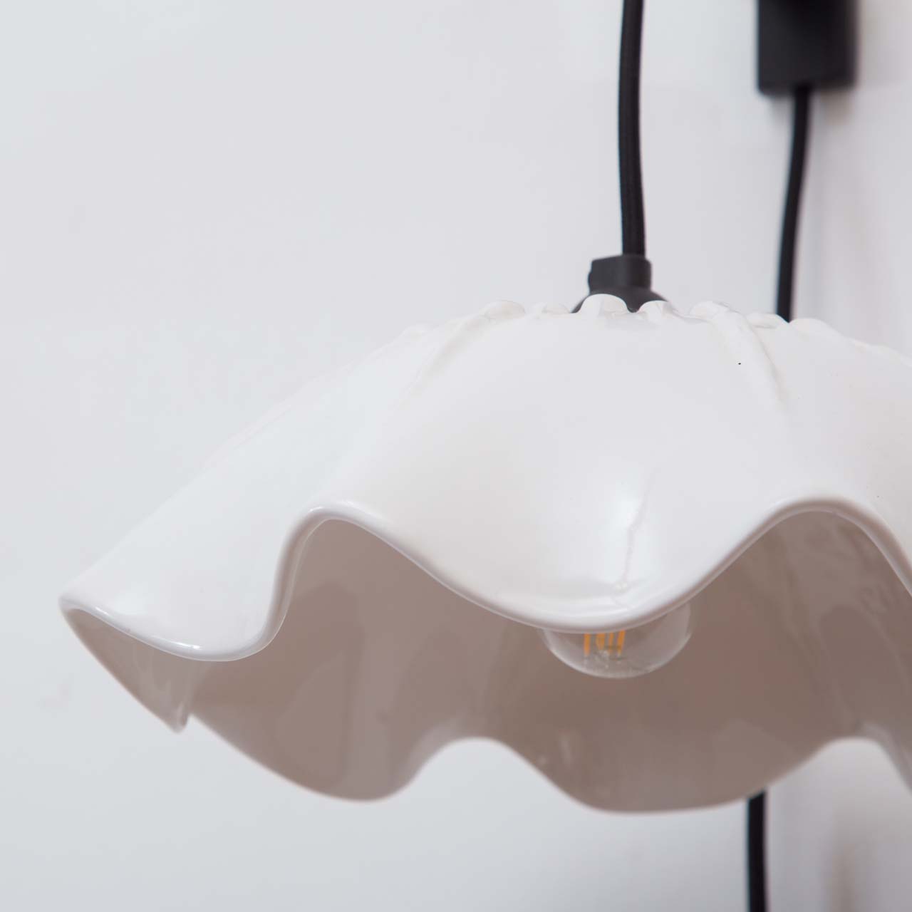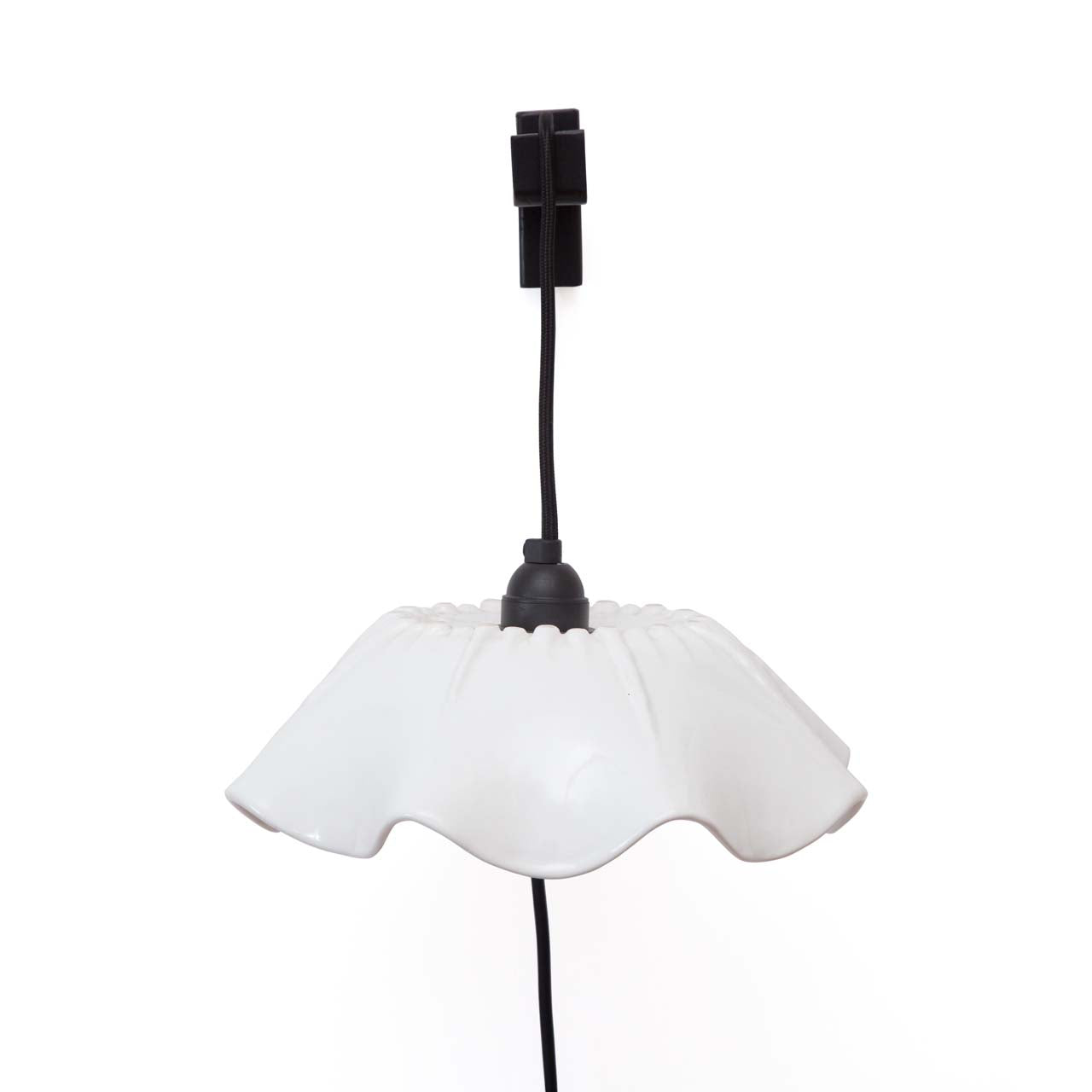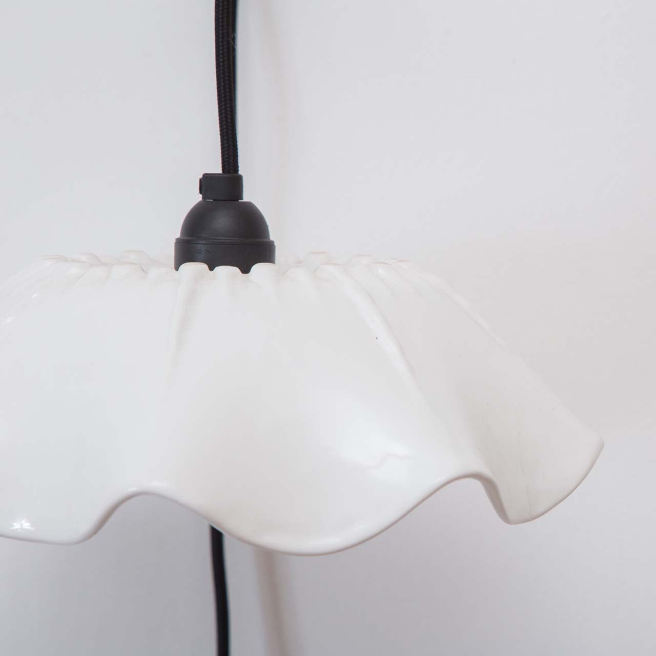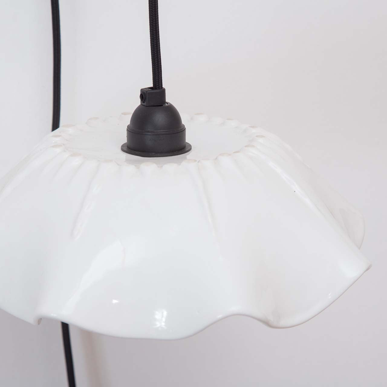 Materialidad: Pantalla cerámica y cable textil liso negro (300 cm)