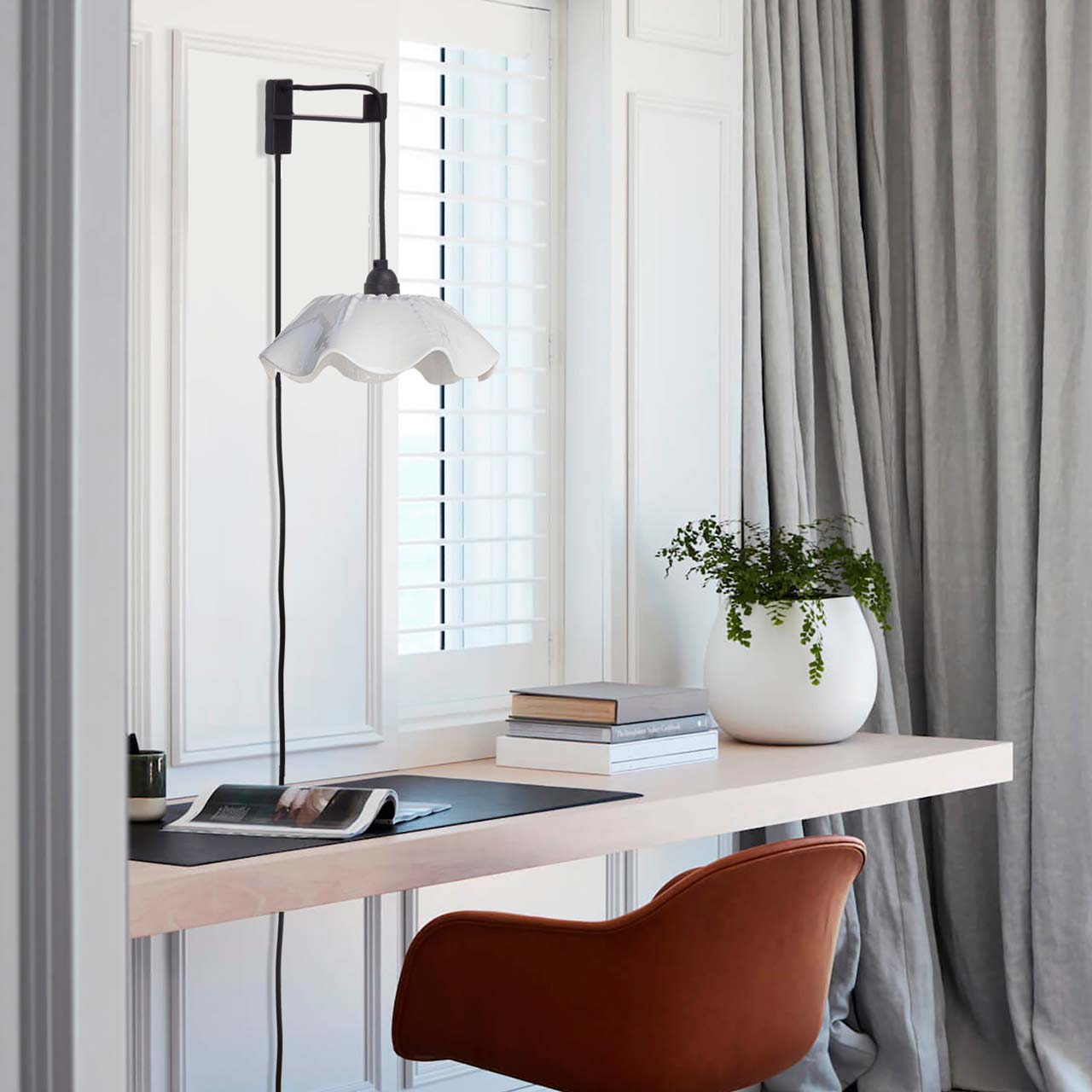 Tiene múltiples usos; como apliqué de muro en un living, como lámpara de velador, al lado de un arrimo o para la decoración de un rincón especial. Viene con suficiente cable para llegar a un enchufe en el caso de que la salida de luz no se encuentre en el muro.
