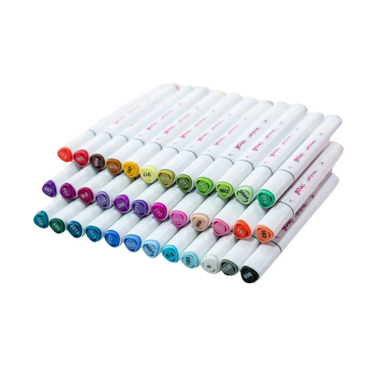 Cada lápiz tiene doble punta: una pincel para trazos dinámicos y una punta fina para detalles precisos.