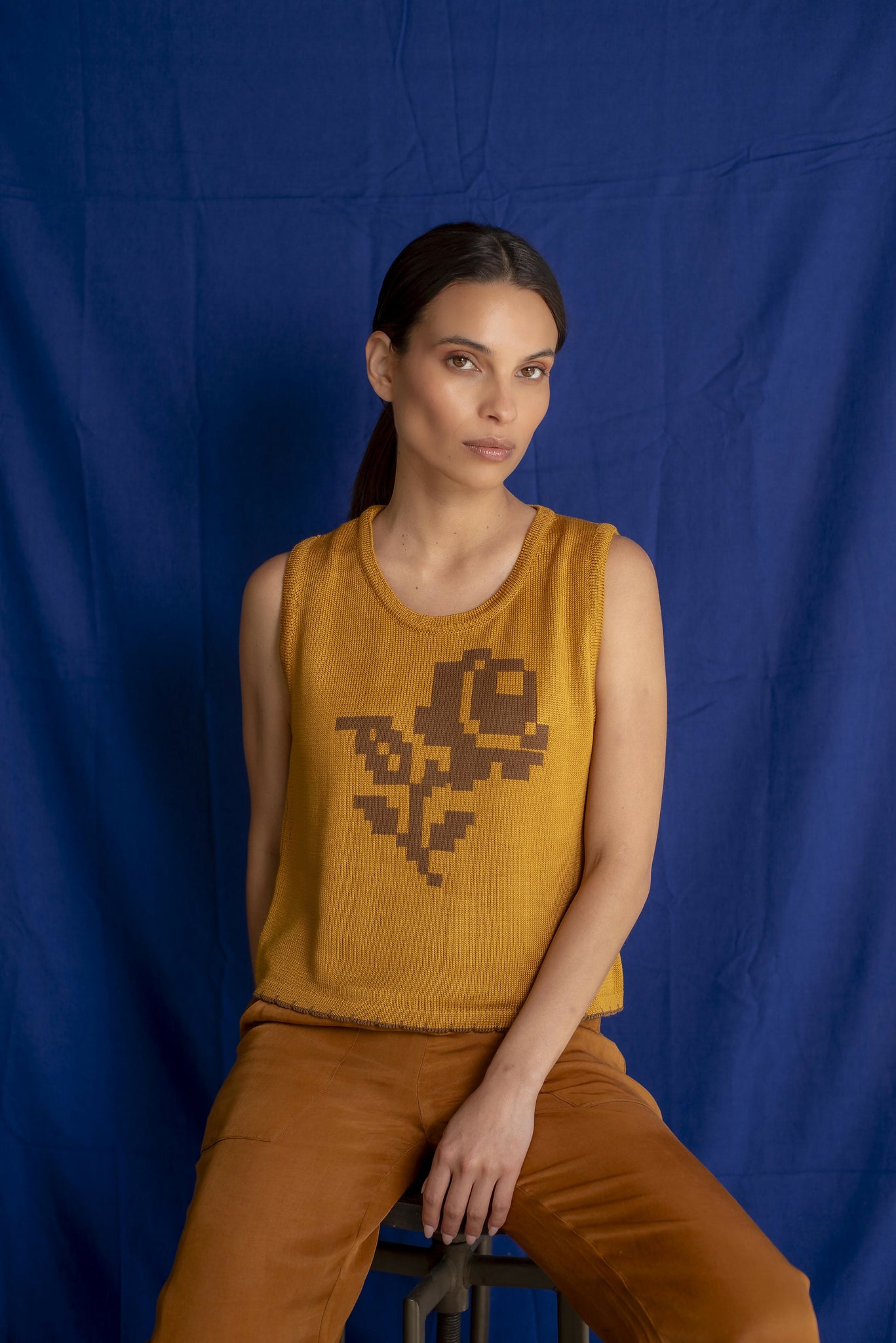 Algodón en tres colores: mostaza, palo rosa y crudo.