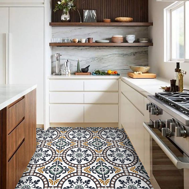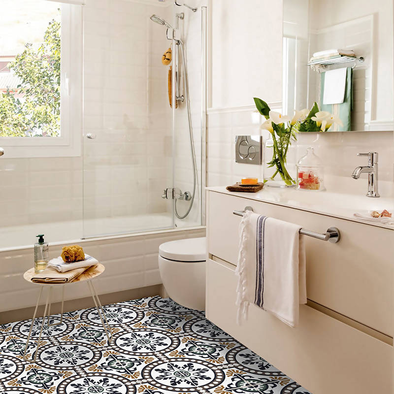 Baldosas de vinilo autoadhesivas de 33x33cm cada una. Cada paquete trae 6 unidades todas iguales. Cubre una superficie de 1,98m. lineal o 0,65m2. Muy fácil de utilizar, de aplicación rápida y limpia.