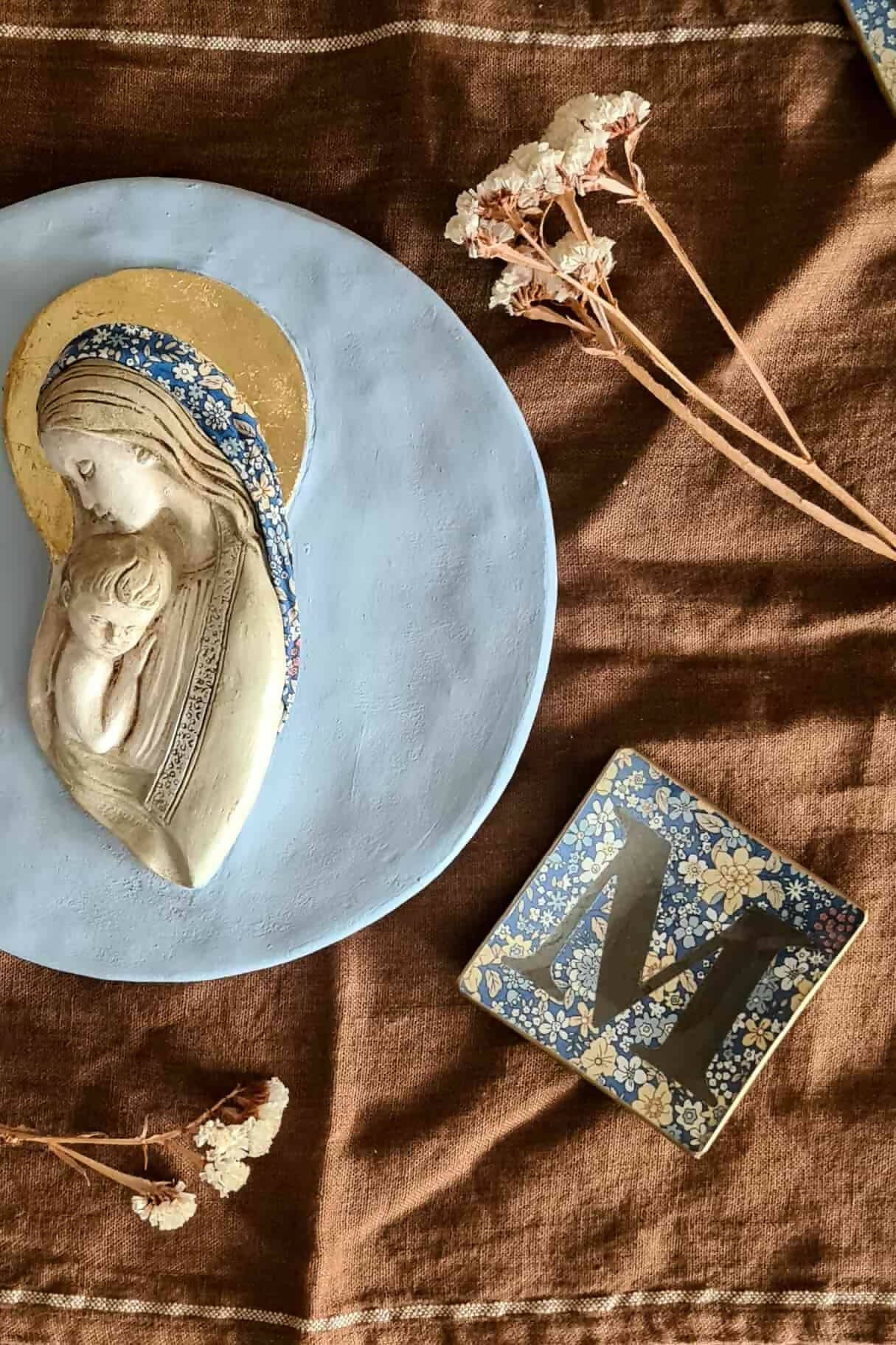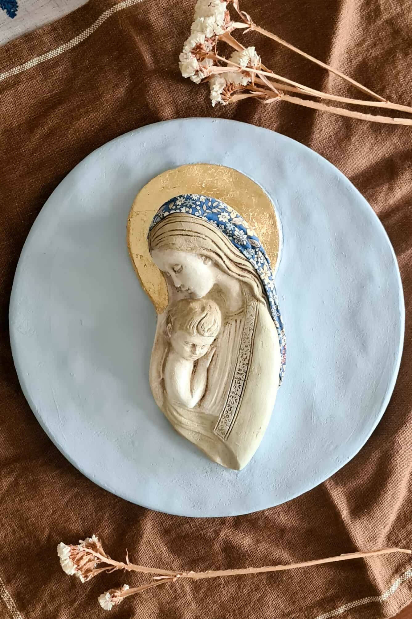 Nuestras virgencitas son un detalle especial y único a la hora de decorar la habitación de los pequeños de la casa. Las hacemos a mano, con cariño, de ahí su acabado lleno de detalles. No hay dos iguales, cada una de ellas habla por sí sola de la dedicación que les ponemos. Buscamos la combinación perfecta de materiales, colores y texturas para conseguir un objeto delicado, artesanal y capaz de transmitir el amor, la ternura y la protección de la maternidad.