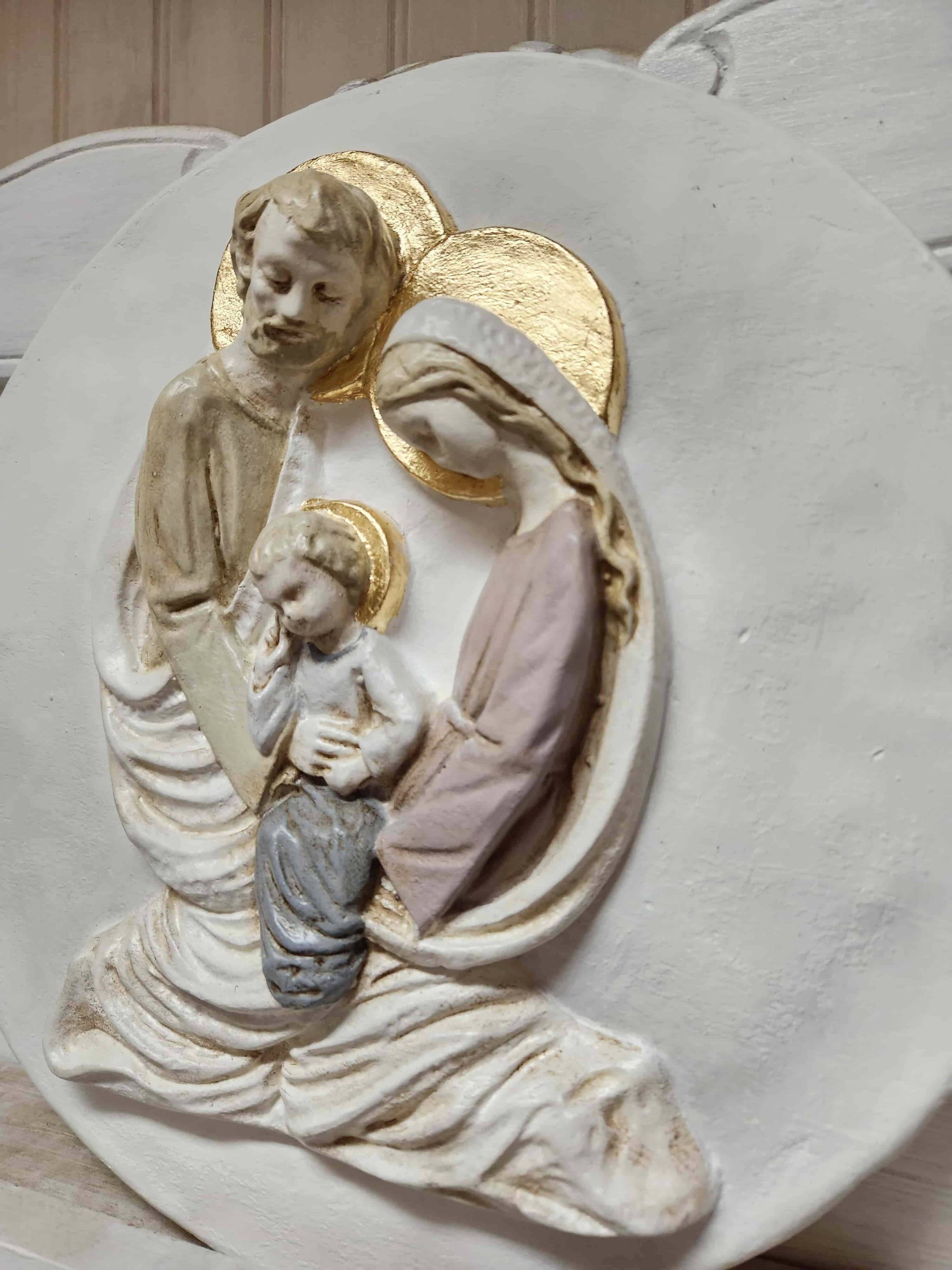 Nuestra Sagrada Familia son un detalle especial y único a la hora de decorar la habitación de los pequeños de la casa. Las hacemos a mano, con cariño, de ahí su acabado lleno de detalles. No hay dos iguales, cada una de ellas habla por sí sola de la dedicación que les ponemos. Buscamos la combinación perfecta de materiales, colores y texturas para conseguir un objeto delicado, artesanal y capaz de transmitir el amor, la ternura y la protección de la maternidad.