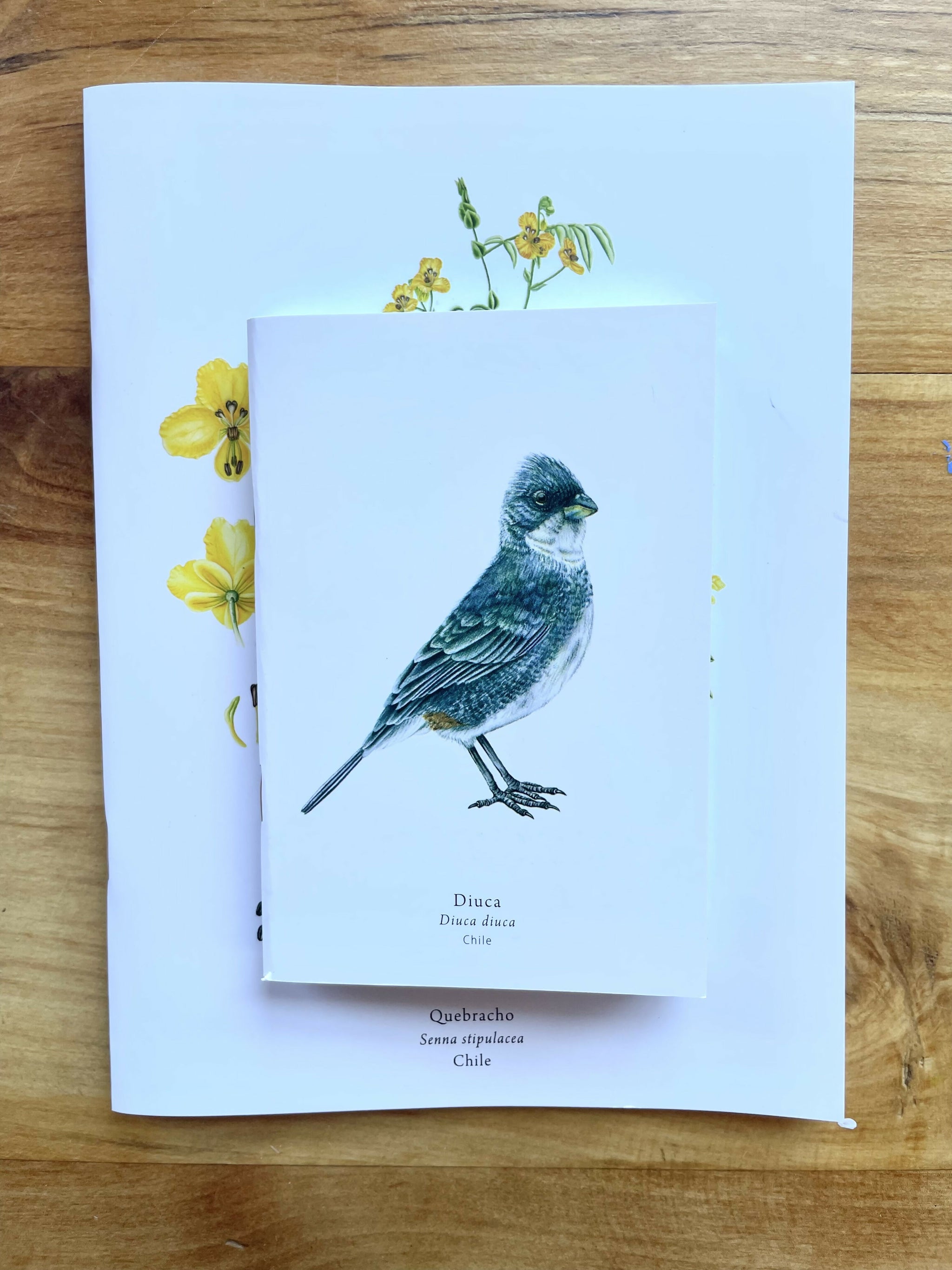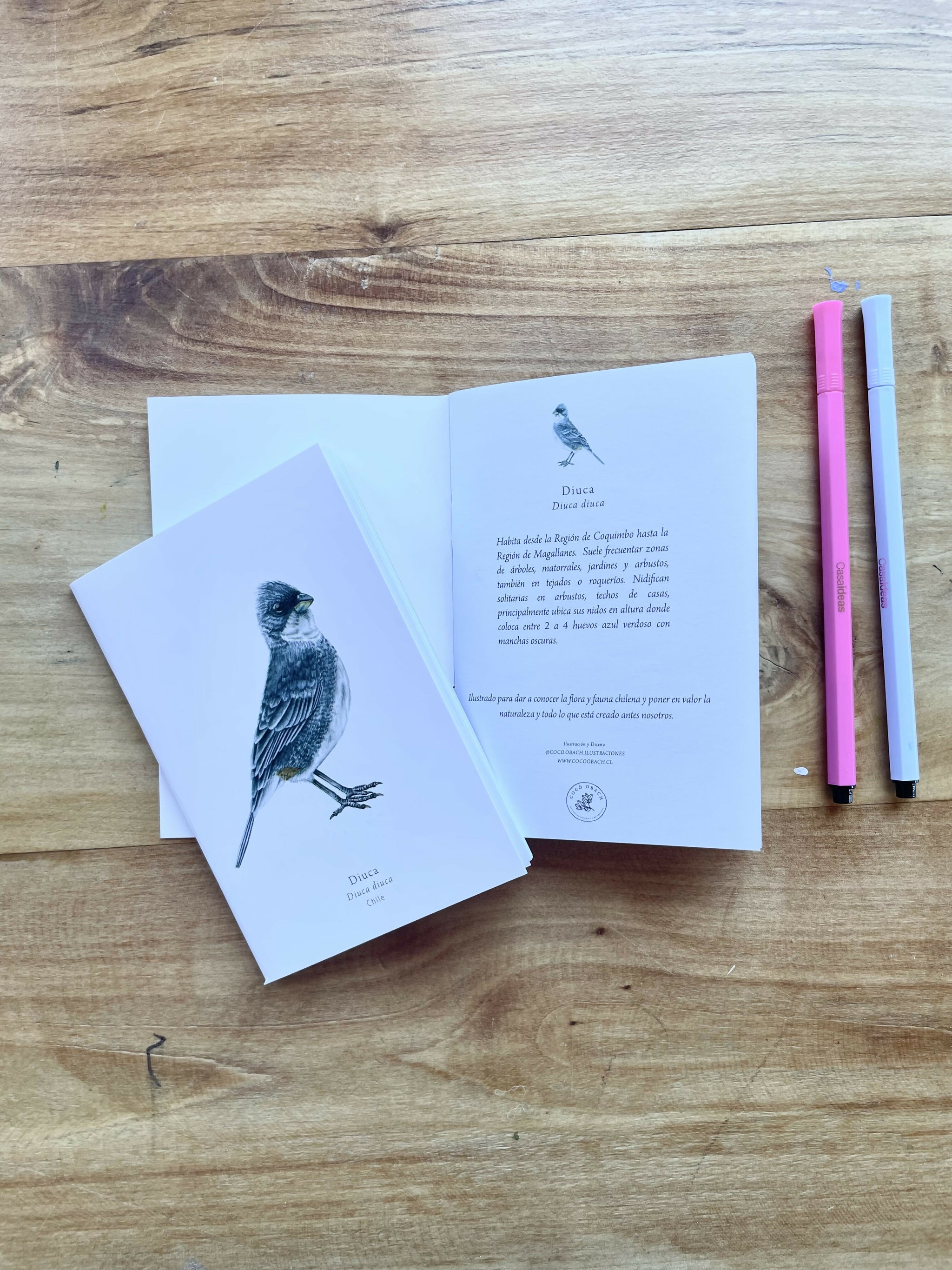 Libretas ilustradas que buscan propagar la flora y fauna chilena y así generar conciencia de las especies que tenemos y su conservación. En su primera hoja podrás encontrar la descripción de cada especie.