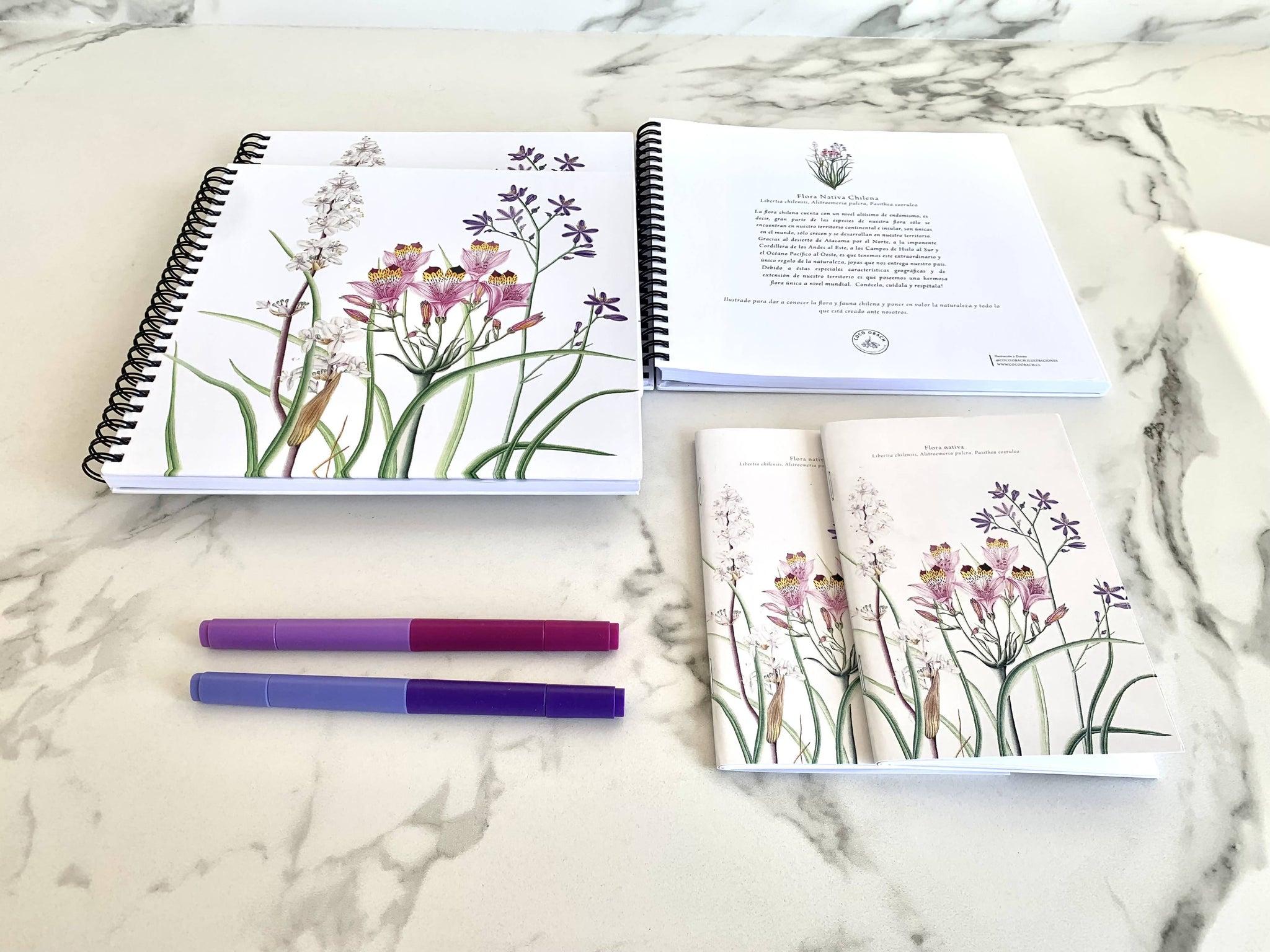 Libretas ilustradas que buscan propagar la flora y fauna chilena y así generar conciencia de las especies que tenemos y su conservación. En su primera hoja podrás encontrar la descripción de cada especie.