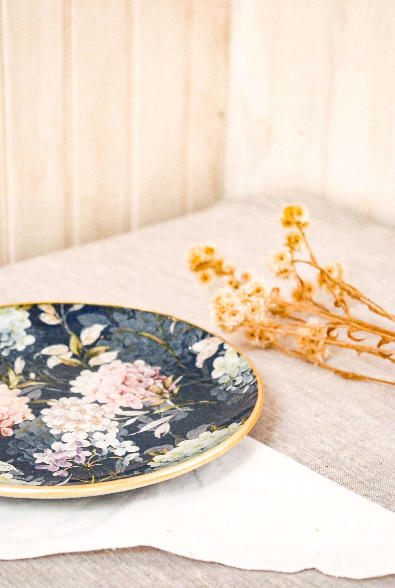 Plato Pan Hortensias redondo