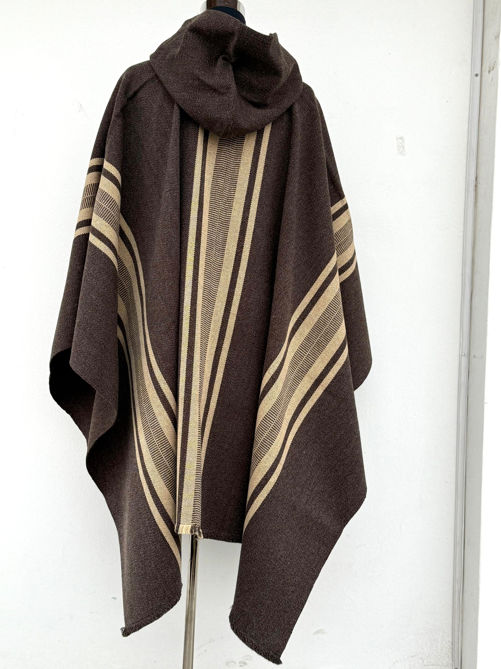 Poncho Peinecillo con Capucha - Lana y Alpaca - Café Moro con Beige