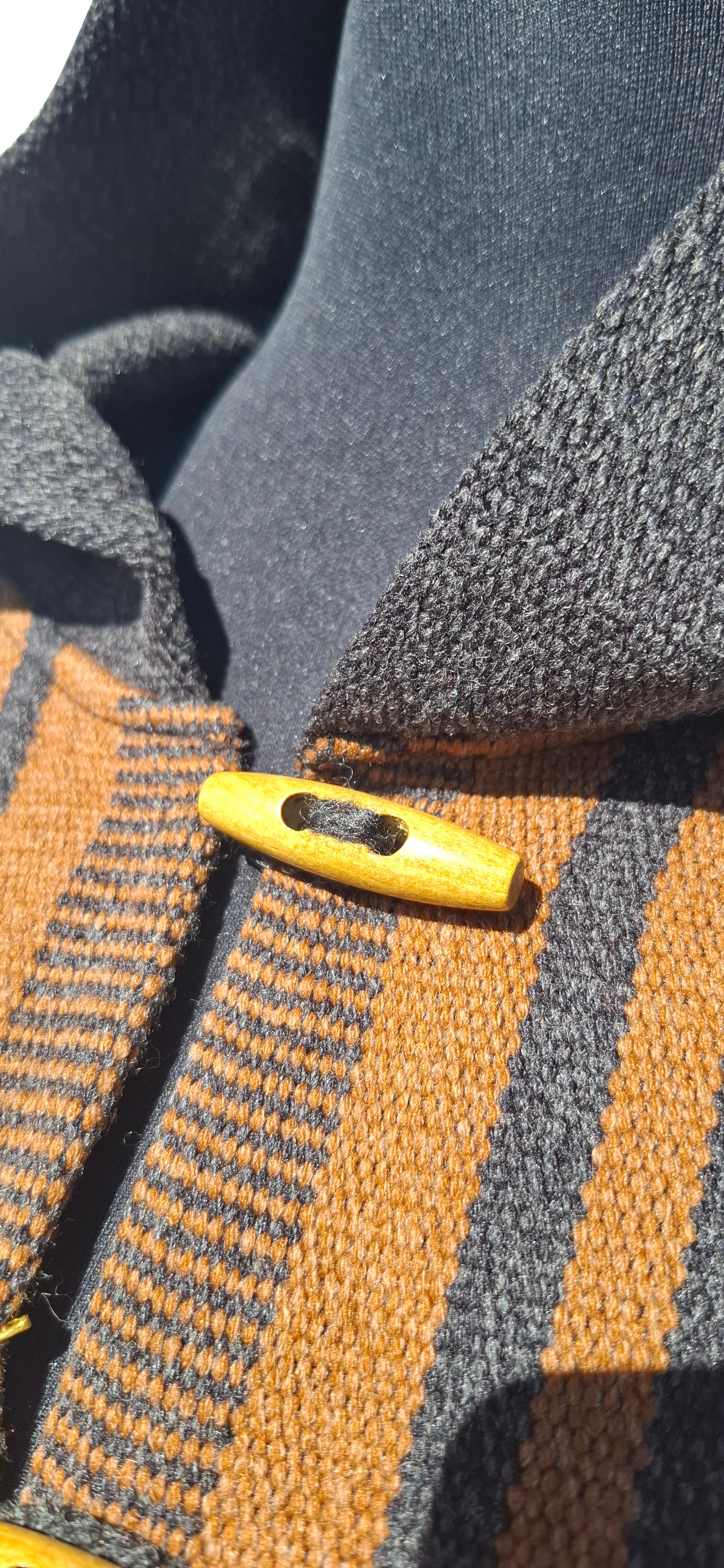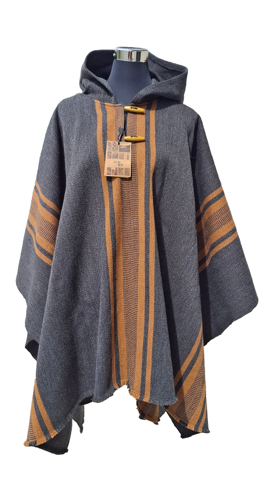 Este poncho ha sido tejido a mano en telar en Chile, con el emblemático diseño peinecillo, reconocido por su elegancia, simetría y valor cultural.
