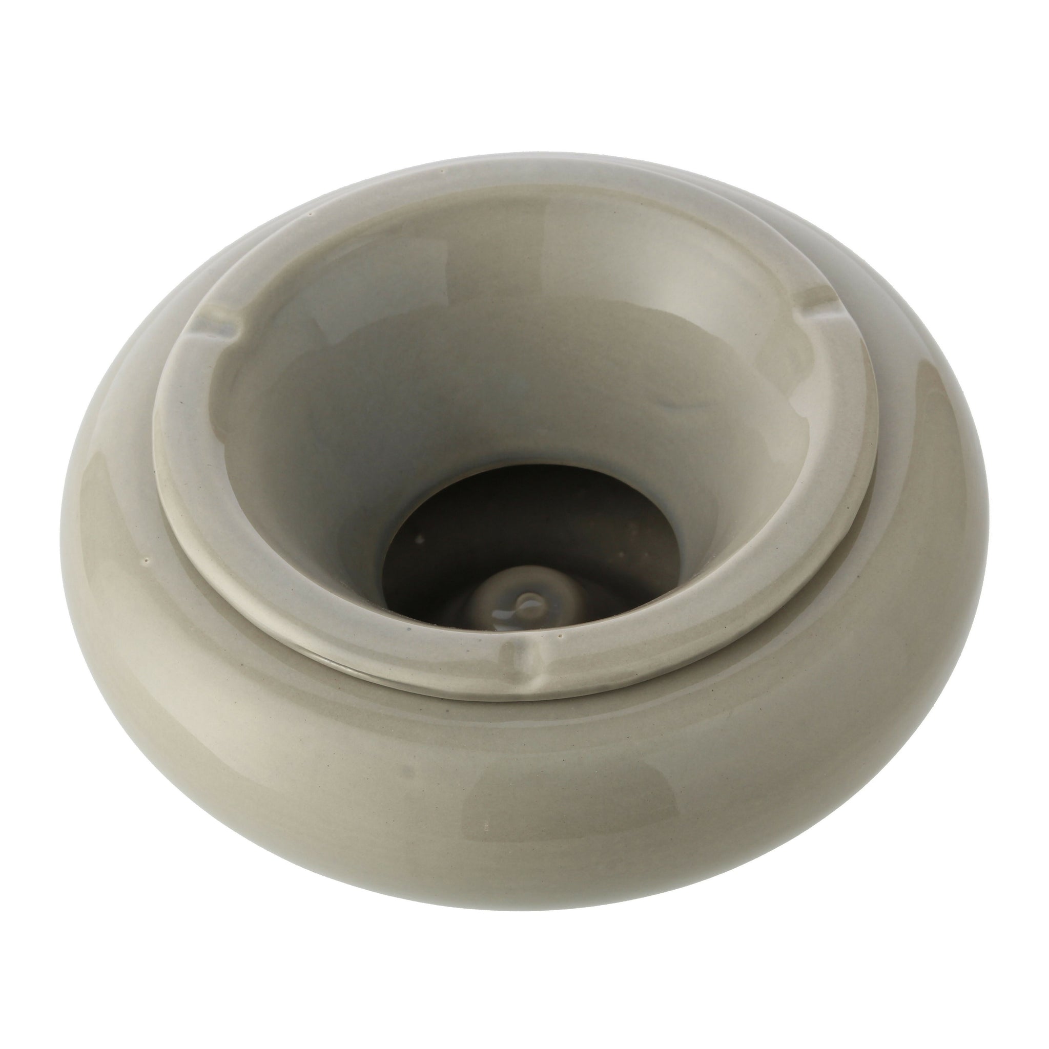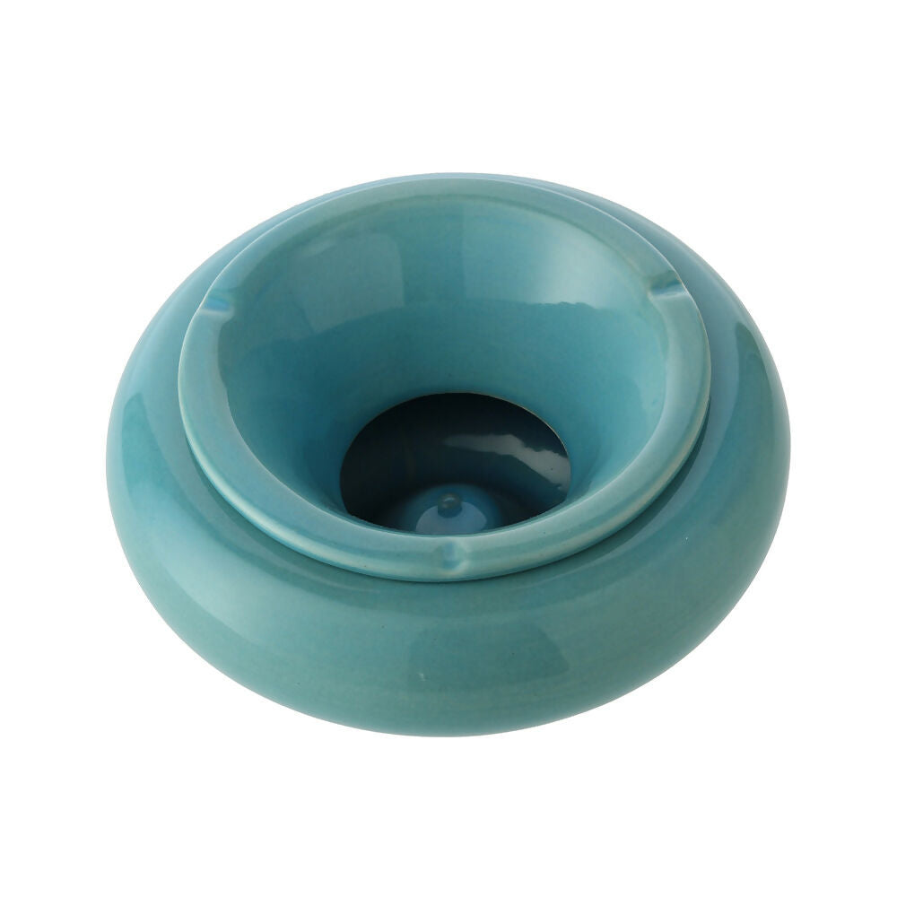 Cenicero de cerámica Redondo 2 con tapa para que no se vuele la ceniza. Se le puede echar agua para disminuir el olor y apagar cigarro.