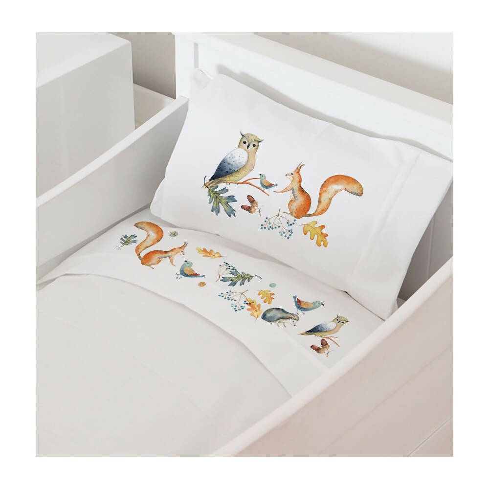 Incluye Sábana bajera, Sábana encimera y funda de almohada.