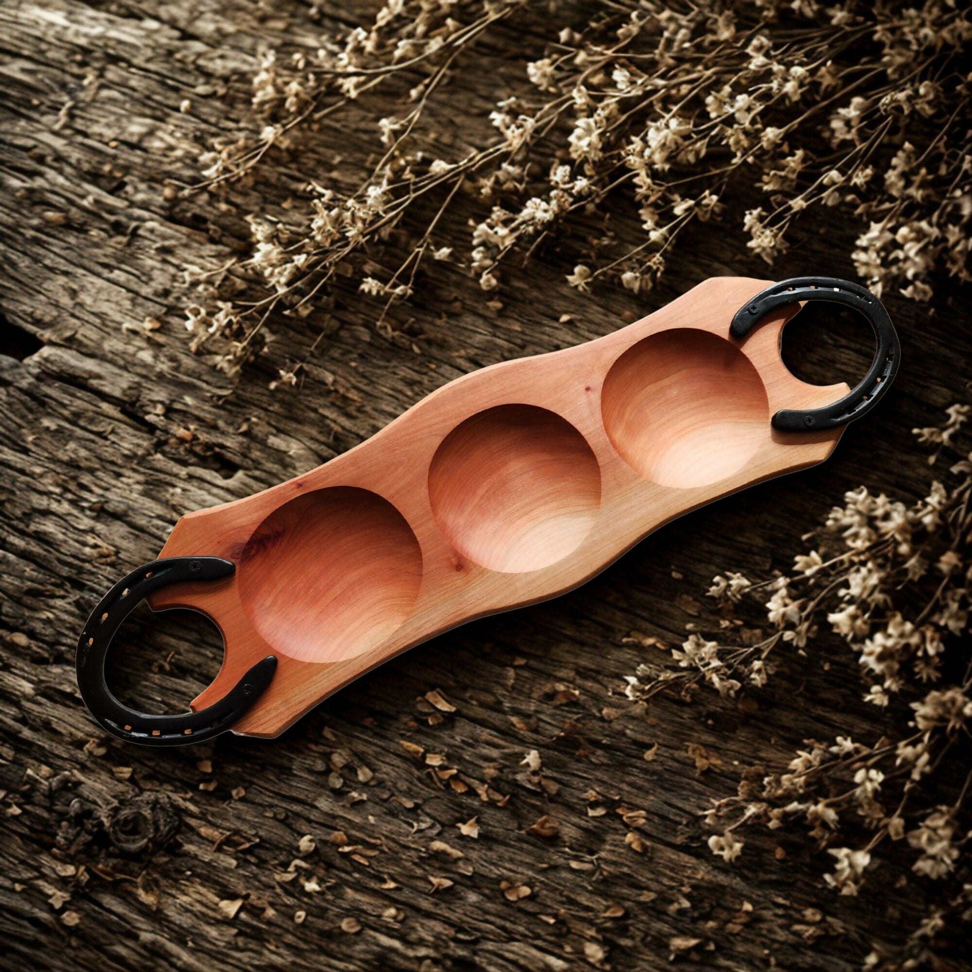 Esta tabla de raulí hará destacar cualquier alimento que pongas en ella. Es cómoda, fácil de agarrar por sus herraduras y posee 3 espacios para montar diferentes tipos de picoteos.