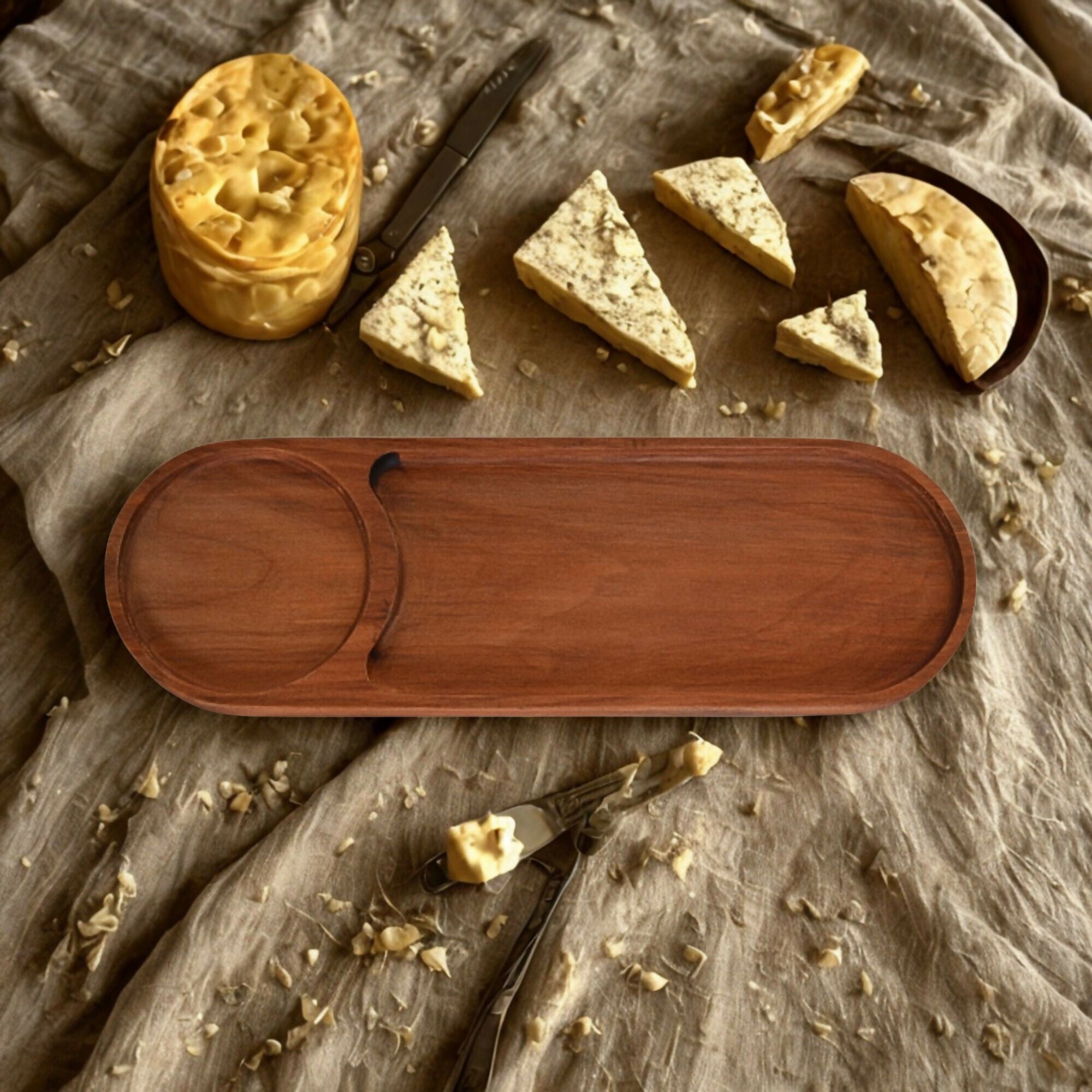 Si disfrutas de los picoteos, no te puedes quedar sin tu tabla de madera nativa de roble pellín, con dos espacios, para colocar diversos alimentos, hecha a mano con mucha maestría y estilo por artesanos de Villarrica en la Región de la Araucanía.