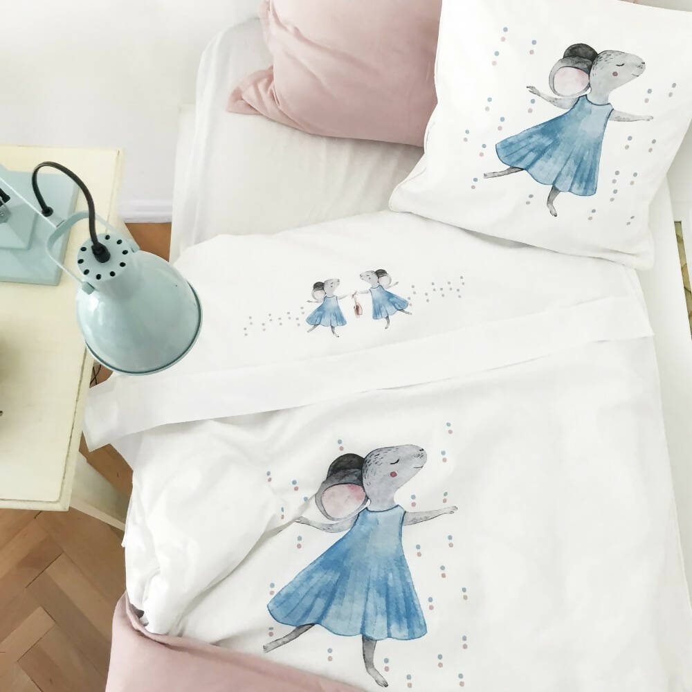 Tu bebé podrá tener los más lindos sueños con este cubreplumón hipoalergénico, 100% algodón. Además podrás encontrar el juego de sábanas del mismo diseño Su delicado estampado harán que su dormitorio sea un lugar placentero y precioso.