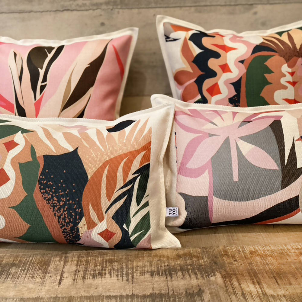 Renueva cualquier espacio de tu casa con este cojín estampado en Linet (Lino con poliéster) 45×45 cm. con cierre y relleno desmontable como opción.