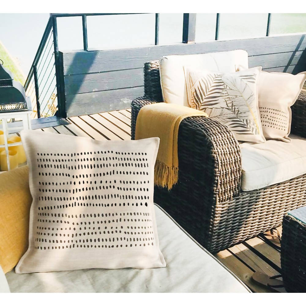 Renueva cualquier espacio de tu casa con este cojín estampado en Linet (Lino con poliéster) 45x45 cm. con cierre y relleno desmontable como opción.