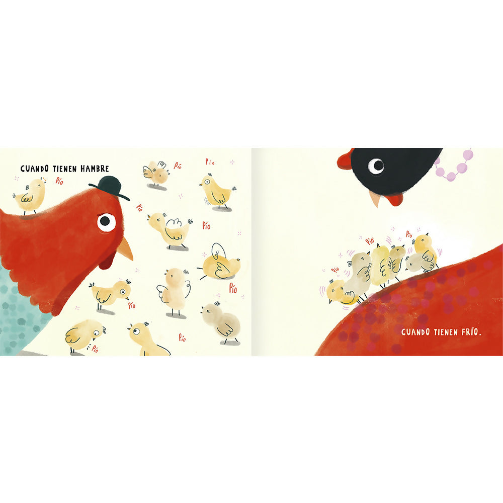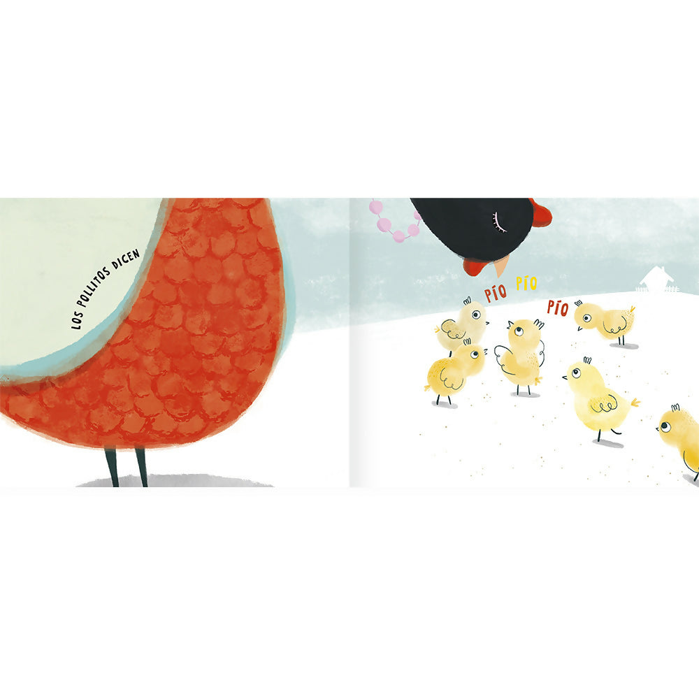 Los pollitos dicen es una de las canciones de cuna más queridas en el mundo hispanohablante. Con coloridas ilustraciones y texto sencillo, relata el ciclo de vida de los pollitos, y como crecen bajo el cuidado de su madre. Es una lectura perfecta para la hora de dormir, llena de ternura con un sentido de calidez y protección familiar. Su lenguaje rítmico y repetitivo fomenta la participación activa de los niños, invitándolos a cantar y repetir las frases.